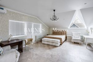 ID 543469. Дом 1250 кв.м в стиле американской классики, сдается впервые! В доме: 2 гостиные с камином, кухня-столовая с выходом в зону гостиной барбекю, рабочая кухня, 4(5) спален, кабинет, SPA-зона: бассейн, хаммам, сауна с русской печью с изразцами, тренажерный зал, домашний кинотеатр, бильярдная, мансардная студия для проживания молодого поколения.На участке 52 сотки помимо основного дома расположены закрытая беседка-барбекю с профессиональной кухней, домик для персонала. Выполнены ландшафтные работы, автополив, фонтанная группа на въезде. Охраняемый коттеджный поселок с пропускной системой. В шаговой доступности инфраструктура Инновационного центра Сколково: кафе, рестораны, медицинская клиника Хадасса Медикал, магазины, аптеки, отель, спортклуб World Class, школа тенниса Сколково, бани, спа-центры и многое другое.Номер объекта: #1/543469/13364Залог 3 113 328 ₽