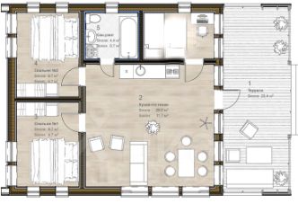 Эко-отель Руза Фэмили Парк предлагает в аренду уютный одноэтажный коттедж из клееного бруса, разделен на две части (дуплекс) - каждая площадью по 80 кв.м с собственным отдельным входом с улицы. Имеется открытая терраса под навесом с комплектом садовой мебели. К услугам гостей: 2 санузла, спальня и гостиная совмещенная с кухней. Комплект спальных и косметических принадлежностей прилагается. Кухня укомплектована бытовой техникой и комплектом посуды. Половина коттеджа идеальна для размещения 4 гостей, двуспальная кровать (или две односпальные кровати) в спальне и большой раскладной диван в гостиной. Возможна установка удобной еврораскладушки (5-е место) или детской кроватки. На улице кирпичный мангал с принадлежностями для барбекю. Бесплатная парковка и уборка входят в стоимость.Предоплата за 1 месяц