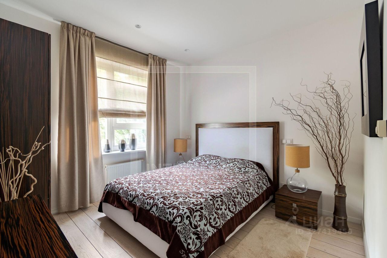 Трёхэтажный таунхаус рядом с природным заказником Долина реки Сетунь. В доме общей площадью 330 м² можно спланировать 5 спален. Выполнен современный ремонт в лаконичных светлых тонах. Оборудована кухня со встроенной бытовой техникой, в гостиной действующий камин. Установлена сплит-система кондиционирования. Из окон открывается вид в благоустроенный двор. 1-й этаж: гостиная с камином, свободная комната, кухня, санузел. 2-й этаж: 3 спальни, санузел с ванной и душевой, балкон. 3-й этаж: 2 спальни, санузел с ванной и душевой, балкон. На цокольном этаже санузел и сауна с парной. Гараж на 1-2 автомобиля.
