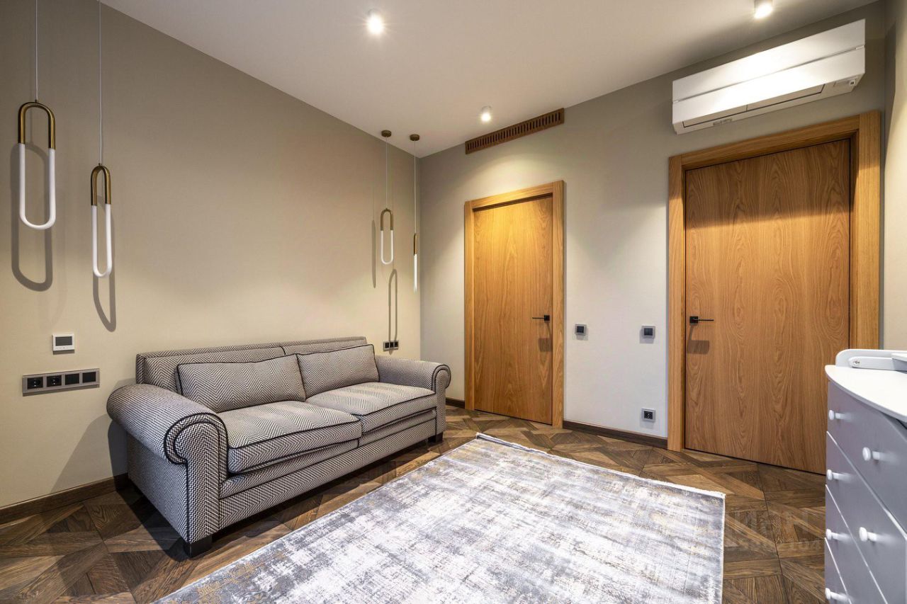 Предлагается на продажу стильная квартира с дизайнерскими ремонтом. В квартире выполнен качественный ремонт с использованием натуральных материалов премиум класса, ремонт делали для себя, на отделке не экономили. Функциональная планировка евротрешка с 2-мя изолированными спальнями, с/у, 2-мя гардеробными, просторной кухней-столовой. Планировкой предусмотрено много места для хранения, отделка с добавлением натурального шпона создает атмосферу уюта и тепла. Свежий ремонт, 4-й этаж, кондиционирование, есть возможность приобрести семейное машиноместо на 2 а/м, просмотры по договоренности.