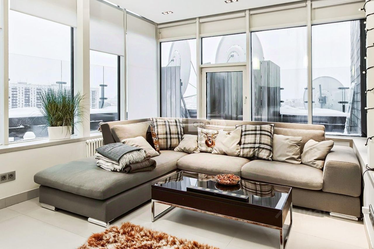 Пентхаус предлагает исключительный вид на столицу: от исторического здания МГУ до величественного храма Христа Спасителя и делового центра Москвы.