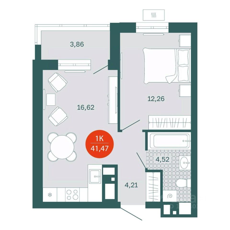 Общая площадь41,47 м2