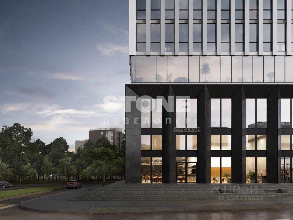Архитектура от бюро WALL. Бизнес-центр STONE Ленинский представляет собой две современные офисные башни: клубная 12-этажная башня S и 23-этажная башня L, которые объединены функциональным стилобатом, где предусмотрена собственная развитая инфраструктура: кафе, рестораны, столовая для сотрудников, аптеки, фитнес-студия, банкоматы.