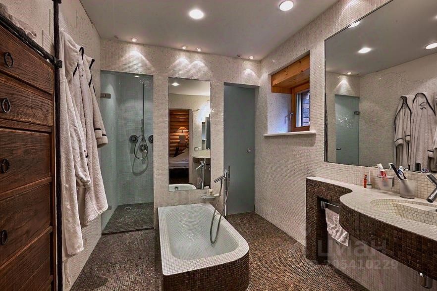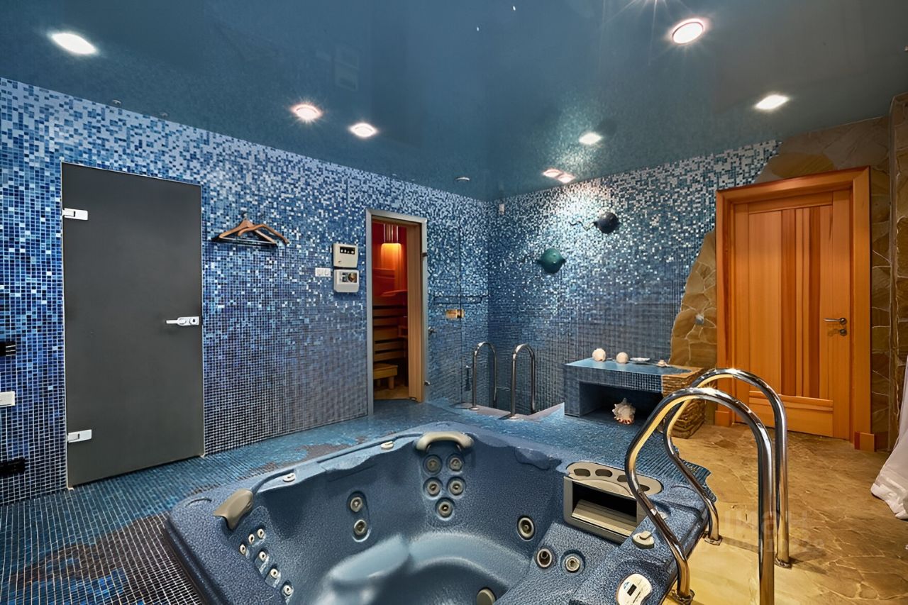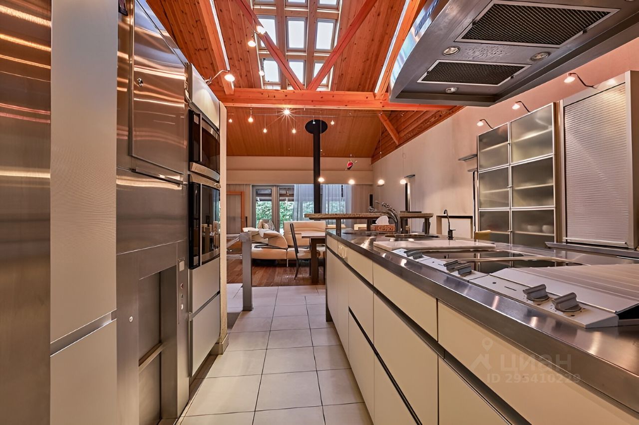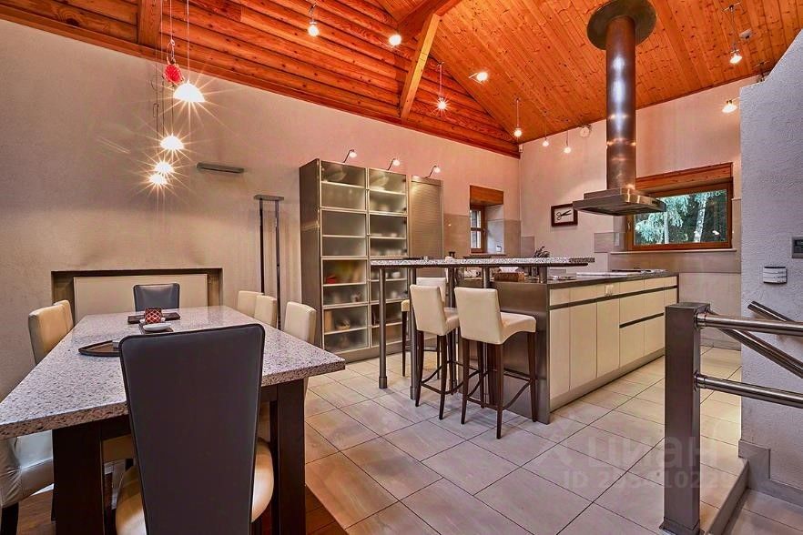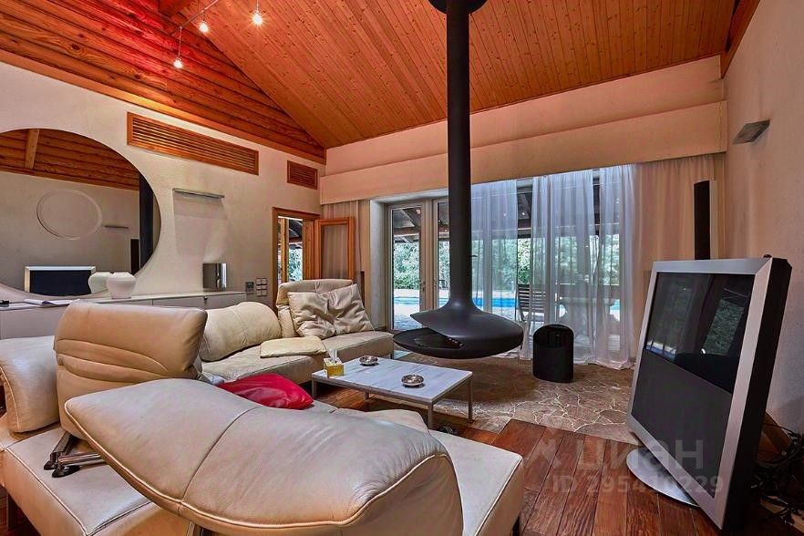 2 уровень: кухня- гостиная 60м2 с подвесным французским камином и выходом на на террасу и на патио с бассейном 15м, 4 спальни (одна из которых мастер-спальня), гардеробная, два санузла в смальте, сауна, гидромассажный бассейн. Высота потолка 3 м. Кухня с островом, каменной барной стойкой, укомплектована встроенной техникой Gaggenau. Обеденная зона со столешницей из натурального камня на 12 человек. Уютная лаунж-зона с угловым кожаным диваном- трансформером.