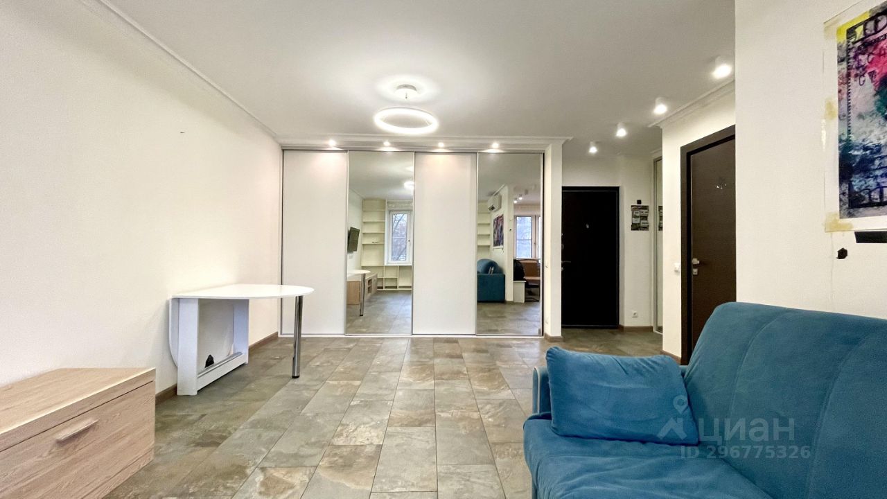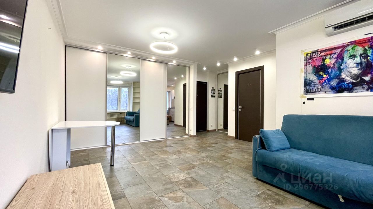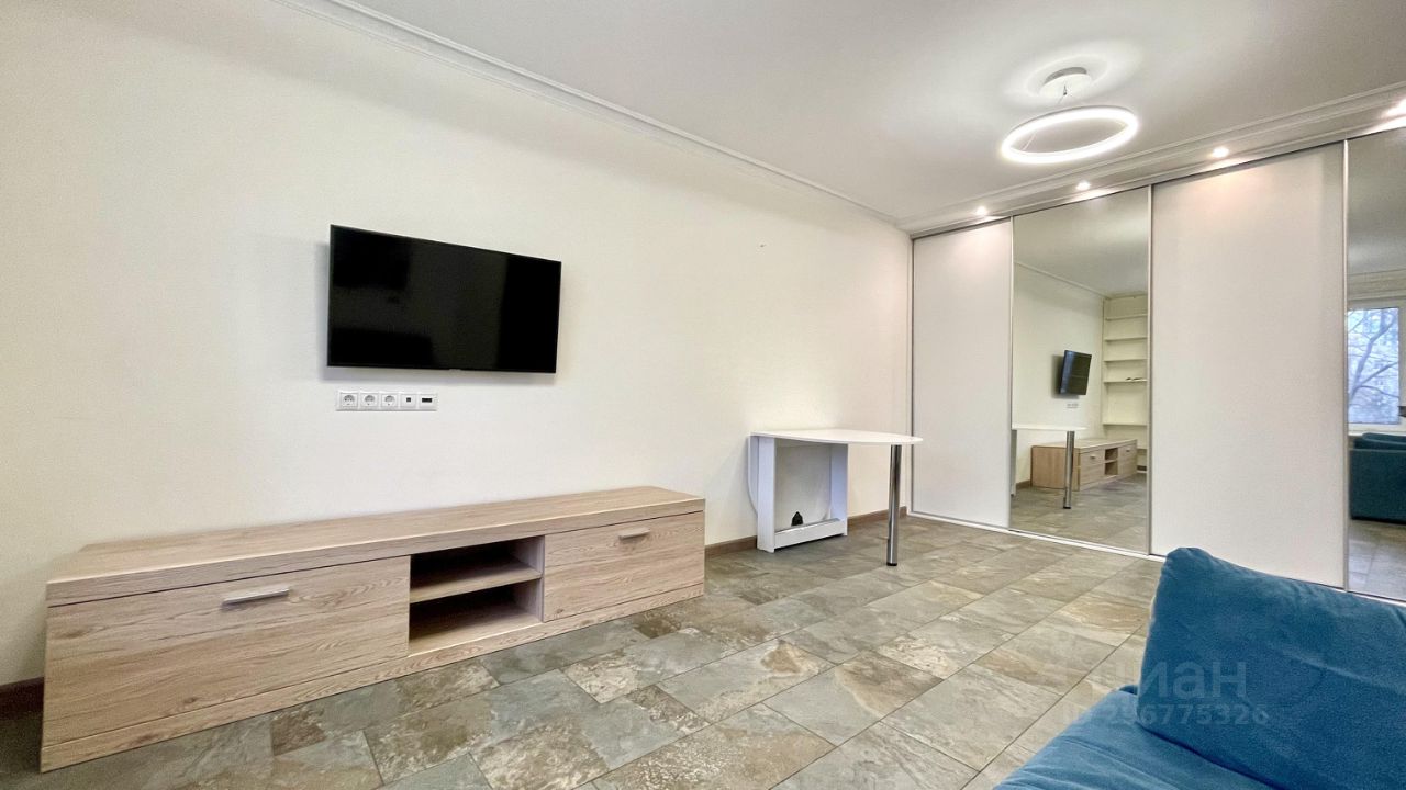 Однушка, переделанная в студию. Объединенный санузел с душевой кабиной. Есть вся необходимая техника и мебель. В комнате просторный шкаф-купе, диван-кровать и кондиционер, есть место для рабочего стола. На кухне варочная панель на 2 конфорки, мини-холодильник, вытяжка. В коридоре стиральная машинка.