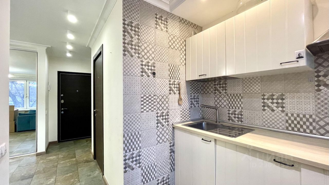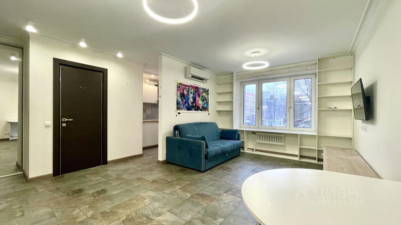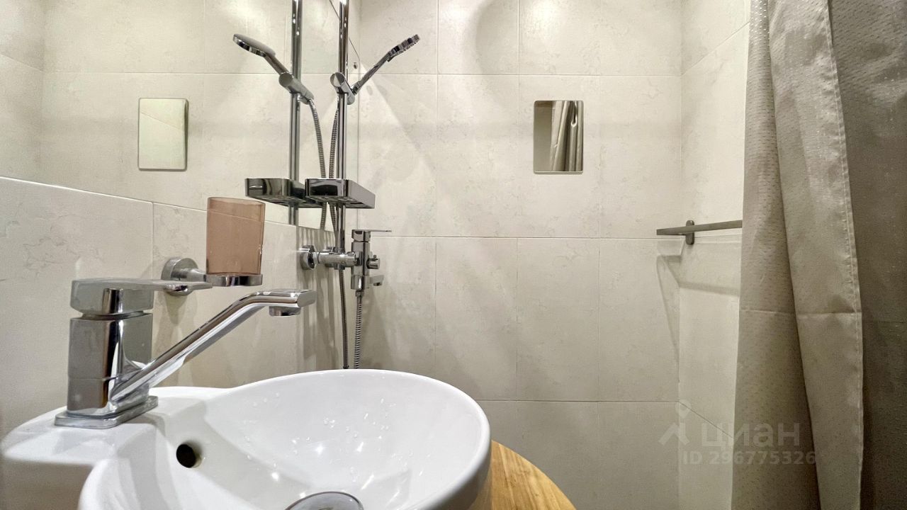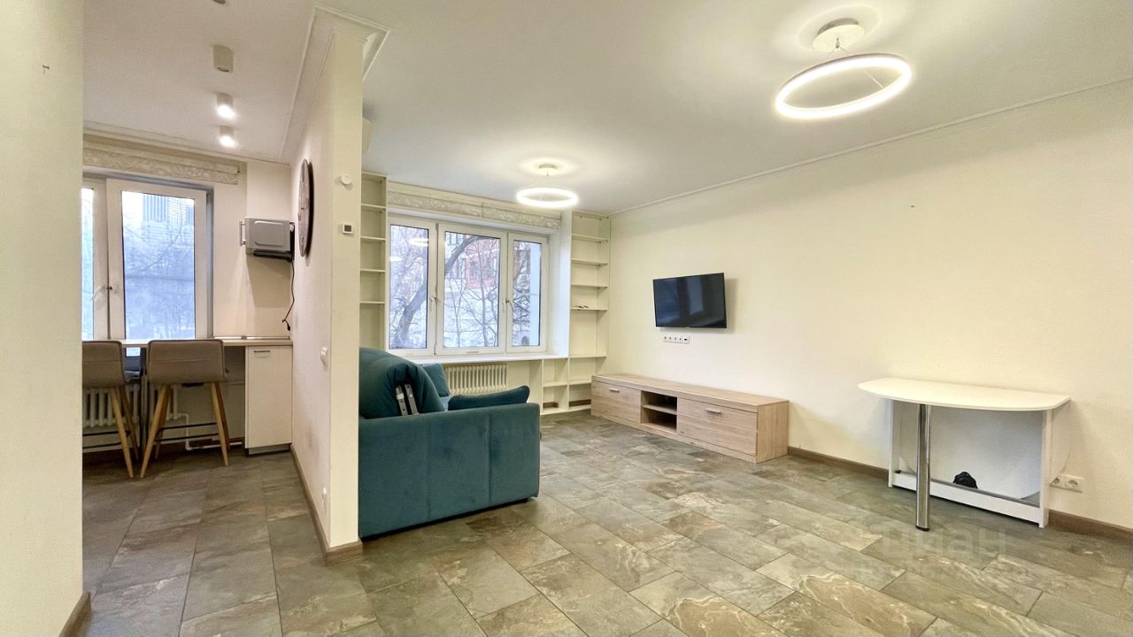 Однушка, переделанная в студию. Объединенный санузел с душевой кабиной. Есть вся необходимая техника и мебель. В комнате просторный шкаф-купе, диван-кровать и кондиционер, есть место для рабочего стола. На кухне варочная панель на 2 конфорки, мини-холодильник, вытяжка. В коридоре стиральная машинка.
