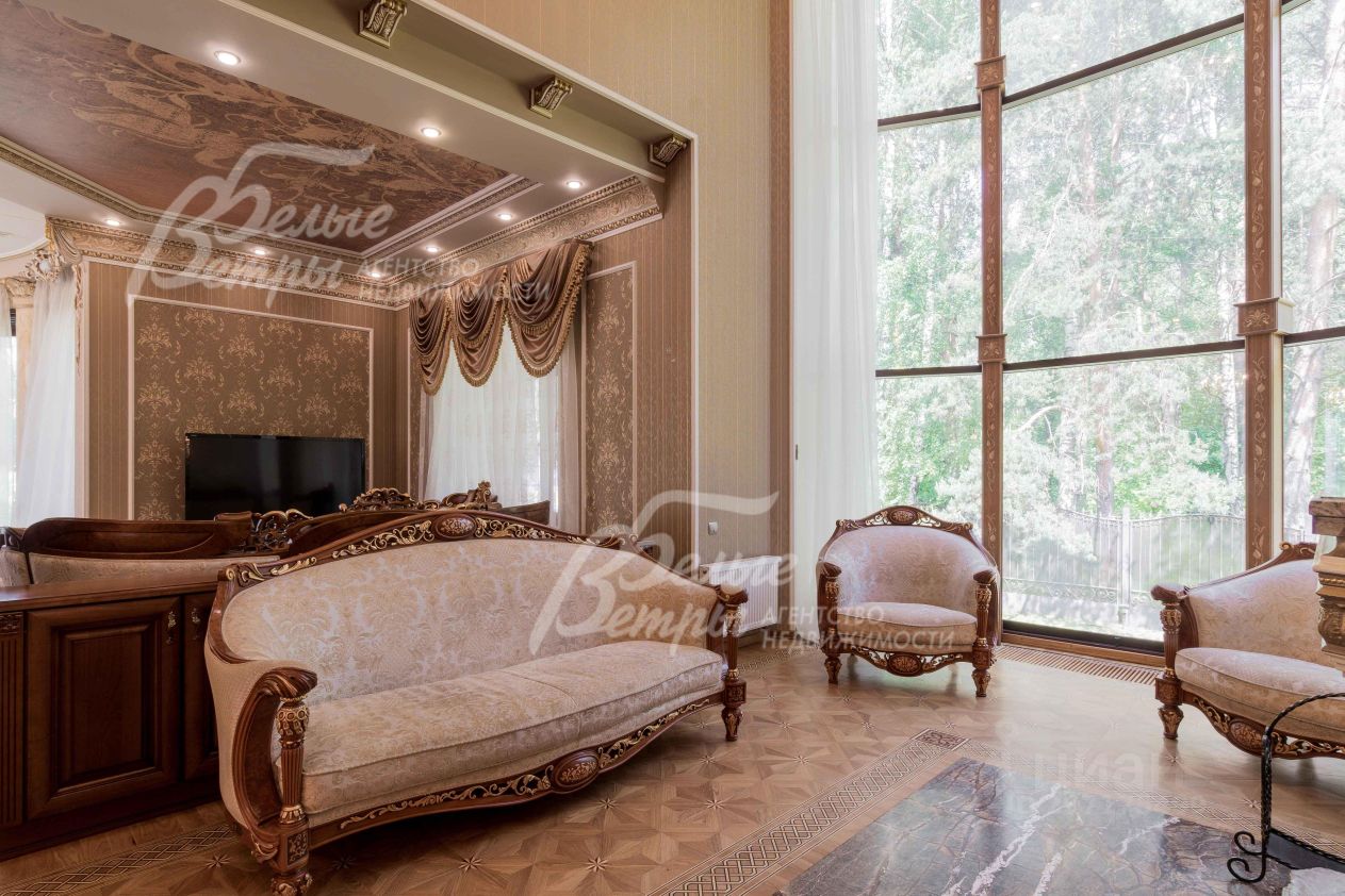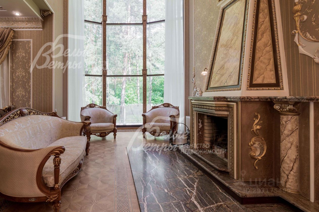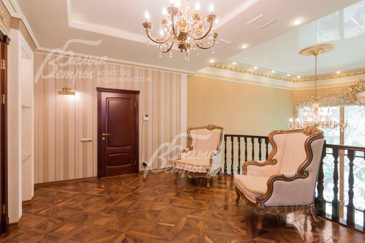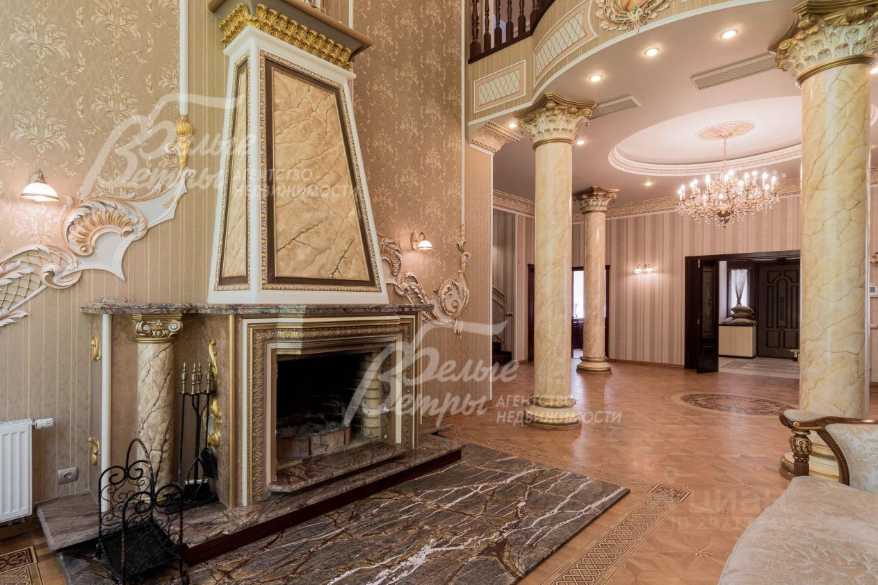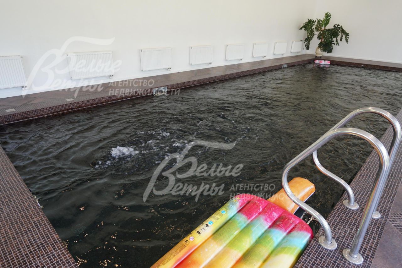 Описание внутренней отделки: эксклюзивная отделка премиум-класса во всех деталях. В том числе, колонны, расписанные художником вручную под мрамор. Также паркет из нескольких ценных сортов дерева, с художественным рисунком по авторским эскизам. На стенах обои, лепнина ручной работы, роспись, витражи, рамы в гостиной с инкрустацией. Использованы в отделке элитные сорта деревьев - красный дуб, эбеновое дерево. На полу везде наборный паркет ручной укладки, авторские комбинации. Очень широкий, удобный лестничный марш из ценных пород дерева. Комбинированная отделка потолков: многоуровневые с подсветкой, с богатыми фигурными карнизами в классическом стиле, есть роспись по штукатурке. В доме установлена элитная импортная сантехника (санфаянс). Все коммуникации разведены по дому под ключ, в том числе теплый пол, внутрипольные конвекторы. Межкомнатные двери с резьбой, часть дверей очень высокие, есть арочные - выполнены на заказ из массива дерева с инкрустациями. Бассейн - отдельно стоящее здание. Температура воды, воздуха, влажность - поддерживаются автоматически. Установлены системы автоматической водоочистки. Чаша 12*4 м с противотоком, с подсветкой, глубиной от 2 до 3 м. В помещении теплые полы, панорамные окна в пол (ПВХ Kaleva с раскладкой) раздвижные, с режимом проветривания/ Красивый большой камин с полуколоннами по бокам, с лепниной, обрамлением и площадкой из нескольких сортов мрамора..