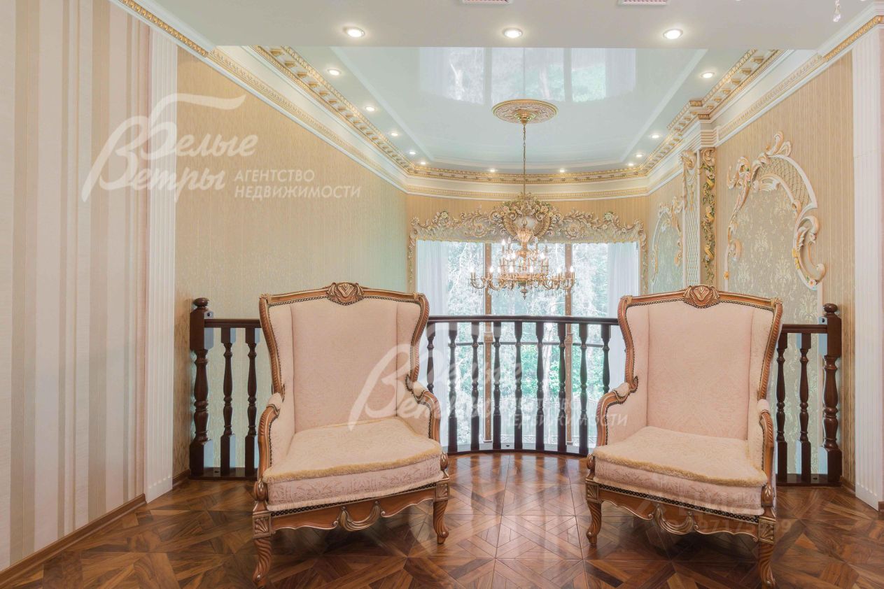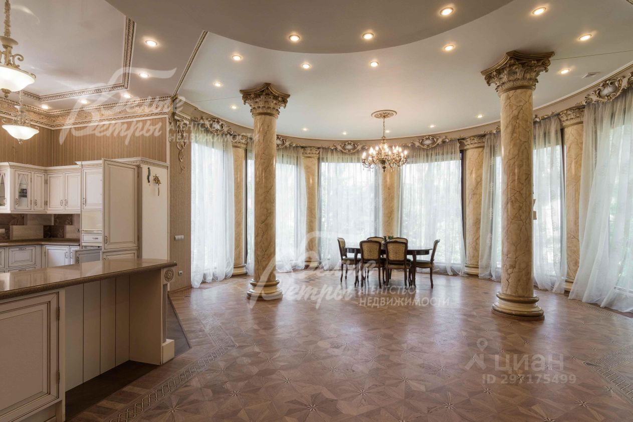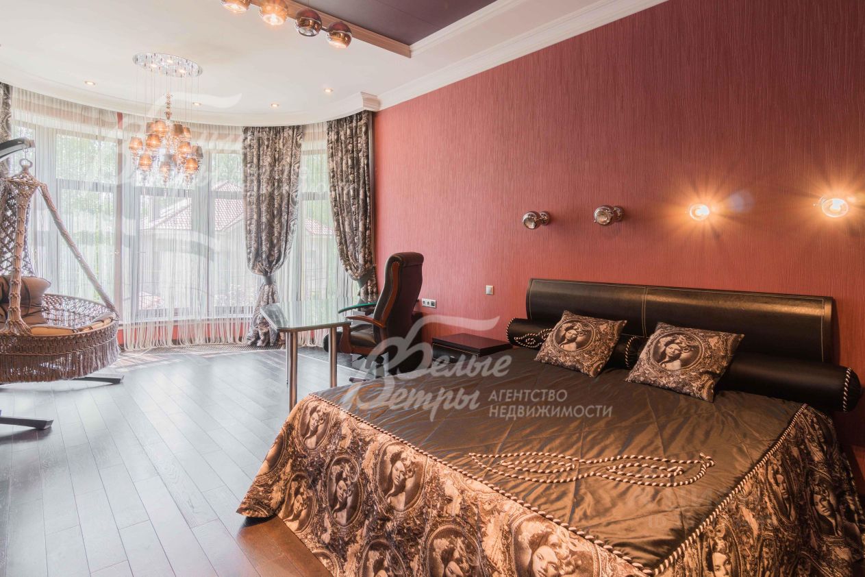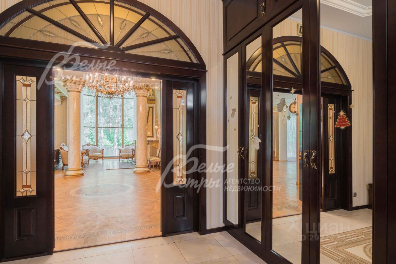 Описание внутренней отделки: эксклюзивная отделка премиум-класса во всех деталях. В том числе, колонны, расписанные художником вручную под мрамор. Также паркет из нескольких ценных сортов дерева, с художественным рисунком по авторским эскизам. На стенах обои, лепнина ручной работы, роспись, витражи, рамы в гостиной с инкрустацией. Использованы в отделке элитные сорта деревьев - красный дуб, эбеновое дерево. На полу везде наборный паркет ручной укладки, авторские комбинации. Очень широкий, удобный лестничный марш из ценных пород дерева. Комбинированная отделка потолков: многоуровневые с подсветкой, с богатыми фигурными карнизами в классическом стиле, есть роспись по штукатурке. В доме установлена элитная импортная сантехника (санфаянс). Все коммуникации разведены по дому под ключ, в том числе теплый пол, внутрипольные конвекторы. Межкомнатные двери с резьбой, часть дверей очень высокие, есть арочные - выполнены на заказ из массива дерева с инкрустациями. Бассейн - отдельно стоящее здание. Температура воды, воздуха, влажность - поддерживаются автоматически. Установлены системы автоматической водоочистки. Чаша 12*4 м с противотоком, с подсветкой, глубиной от 2 до 3 м. В помещении теплые полы, панорамные окна в пол (ПВХ Kaleva с раскладкой) раздвижные, с режимом проветривания/ Красивый большой камин с полуколоннами по бокам, с лепниной, обрамлением и площадкой из нескольких сортов мрамора..
