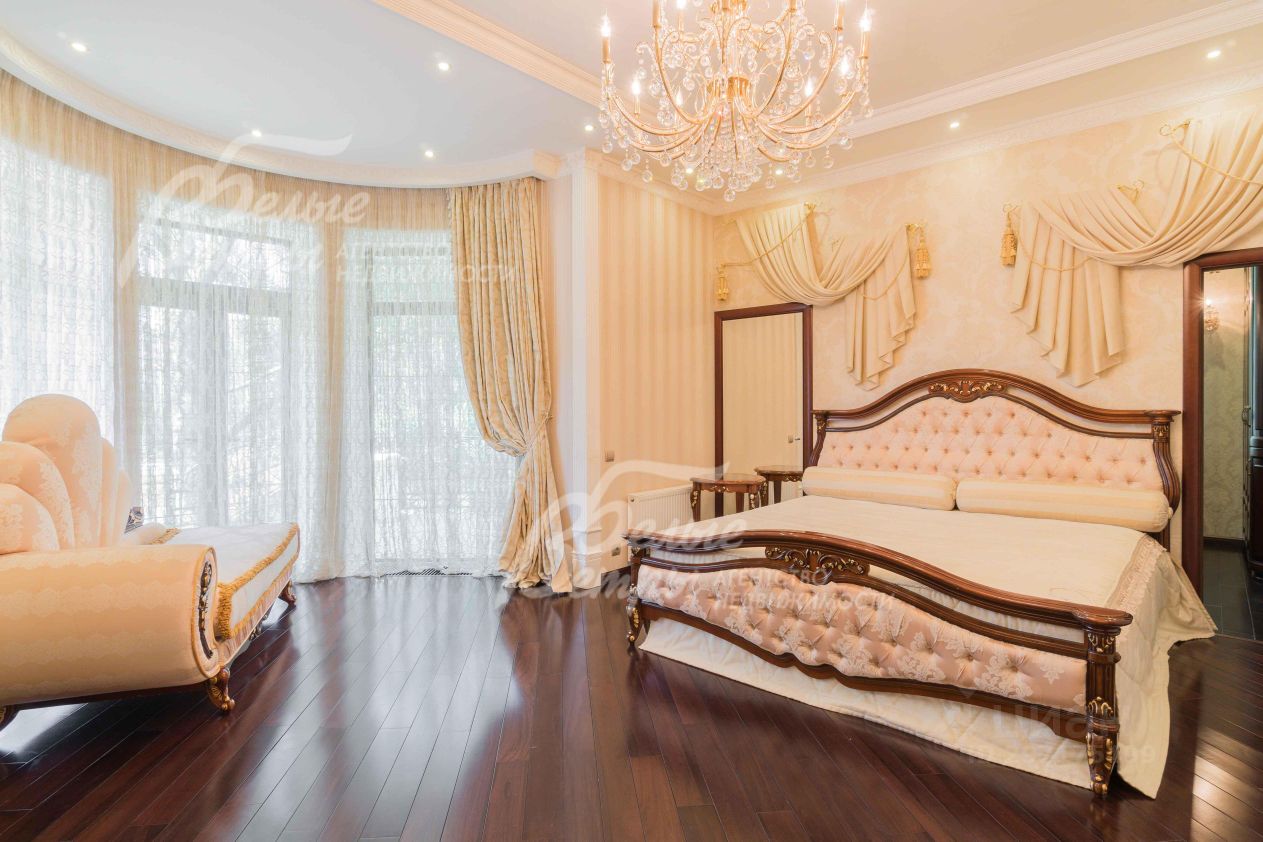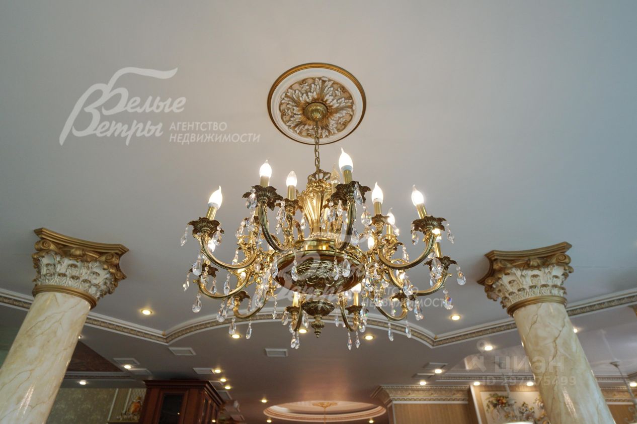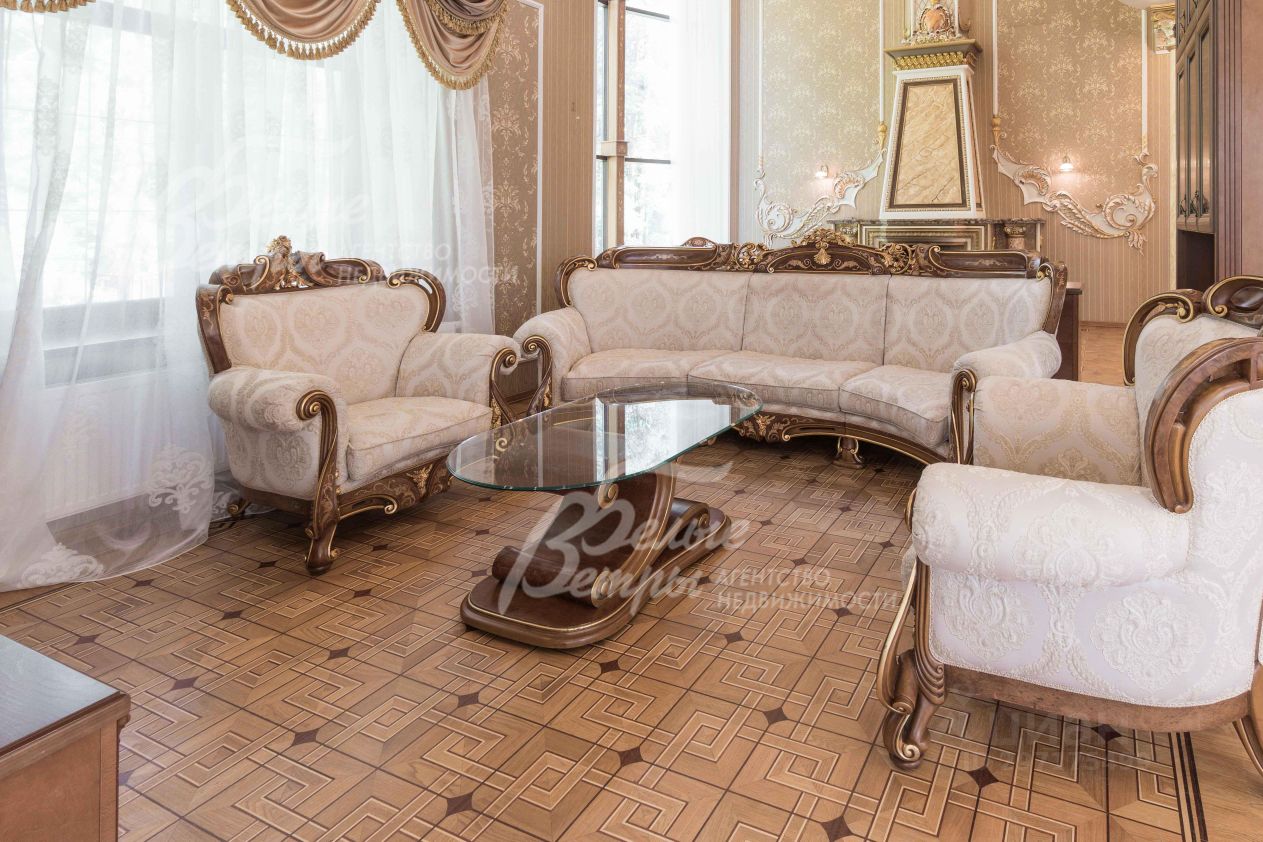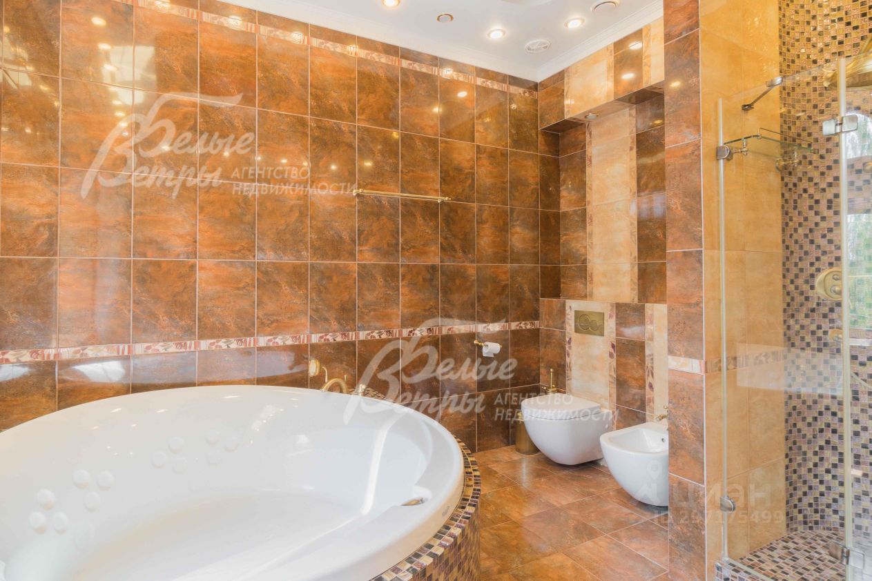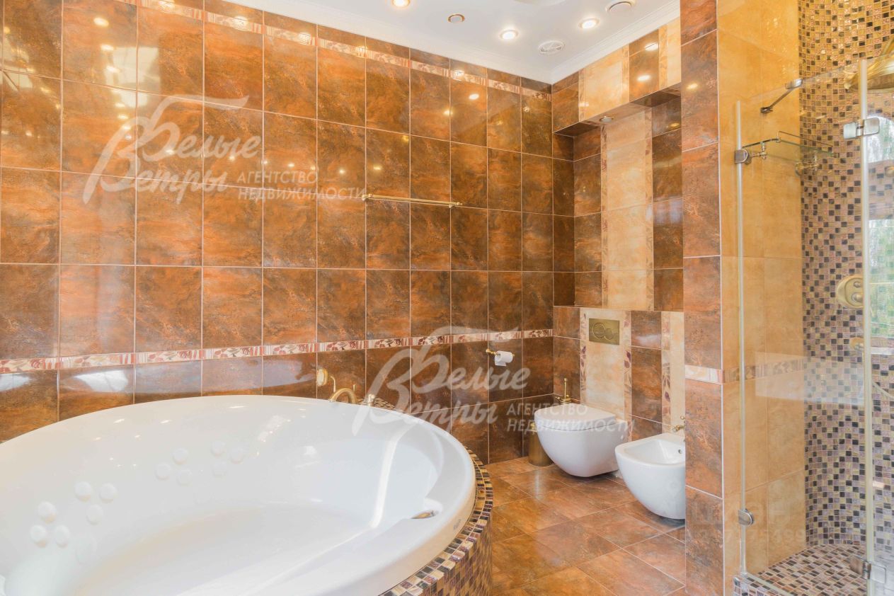 Описание внутренней отделки: эксклюзивная отделка премиум-класса во всех деталях. В том числе, колонны, расписанные художником вручную под мрамор. Также паркет из нескольких ценных сортов дерева, с художественным рисунком по авторским эскизам. На стенах обои, лепнина ручной работы, роспись, витражи, рамы в гостиной с инкрустацией. Использованы в отделке элитные сорта деревьев - красный дуб, эбеновое дерево. На полу везде наборный паркет ручной укладки, авторские комбинации. Очень широкий, удобный лестничный марш из ценных пород дерева. Комбинированная отделка потолков: многоуровневые с подсветкой, с богатыми фигурными карнизами в классическом стиле, есть роспись по штукатурке. В доме установлена элитная импортная сантехника (санфаянс). Все коммуникации разведены по дому под ключ, в том числе теплый пол, внутрипольные конвекторы. Межкомнатные двери с резьбой, часть дверей очень высокие, есть арочные - выполнены на заказ из массива дерева с инкрустациями. Бассейн - отдельно стоящее здание. Температура воды, воздуха, влажность - поддерживаются автоматически. Установлены системы автоматической водоочистки. Чаша 12*4 м с противотоком, с подсветкой, глубиной от 2 до 3 м. В помещении теплые полы, панорамные окна в пол (ПВХ Kaleva с раскладкой) раздвижные, с режимом проветривания/ Красивый большой камин с полуколоннами по бокам, с лепниной, обрамлением и площадкой из нескольких сортов мрамора..