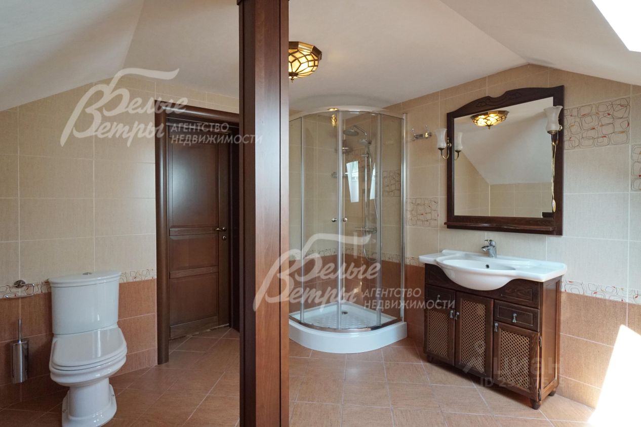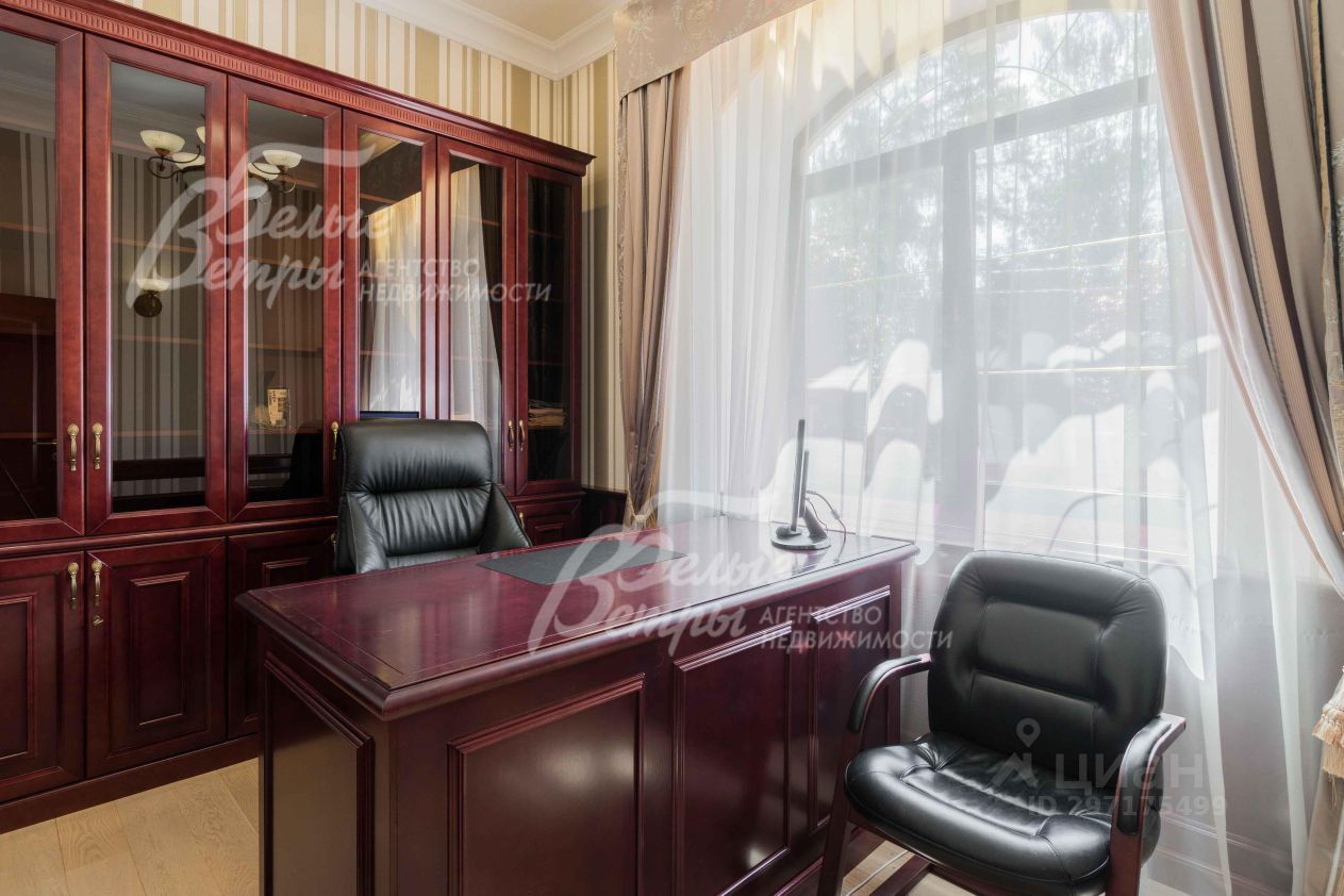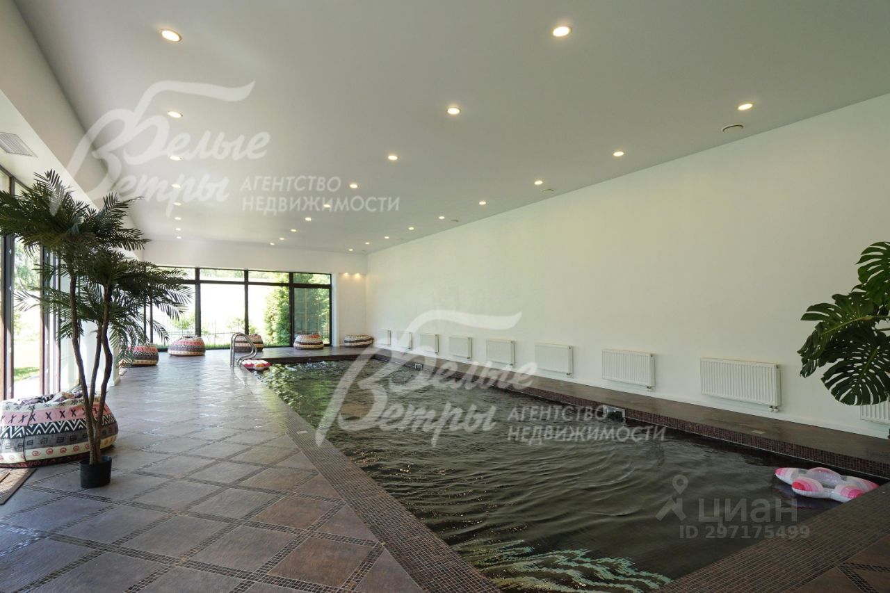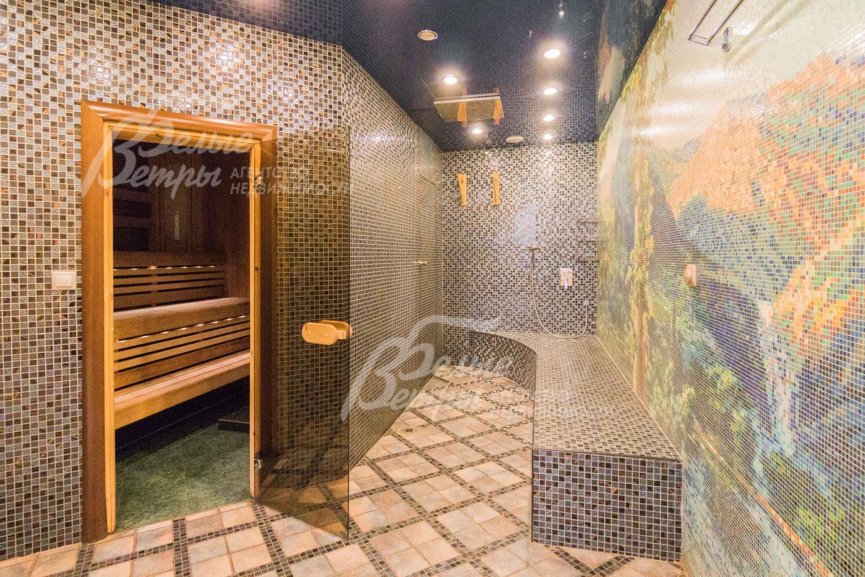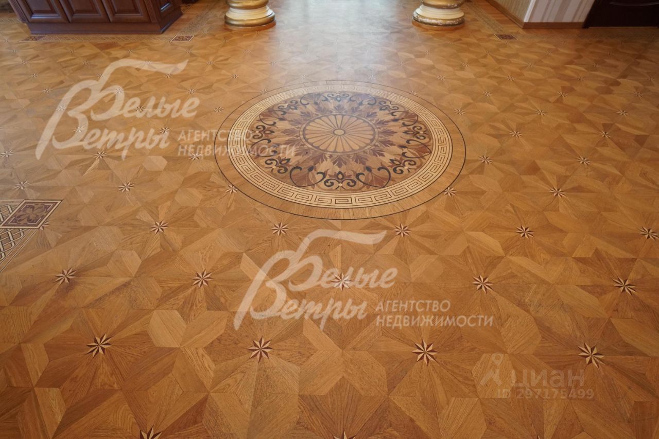 Описание внутренней отделки: эксклюзивная отделка премиум-класса во всех деталях. В том числе, колонны, расписанные художником вручную под мрамор. Также паркет из нескольких ценных сортов дерева, с художественным рисунком по авторским эскизам. На стенах обои, лепнина ручной работы, роспись, витражи, рамы в гостиной с инкрустацией. Использованы в отделке элитные сорта деревьев - красный дуб, эбеновое дерево. На полу везде наборный паркет ручной укладки, авторские комбинации. Очень широкий, удобный лестничный марш из ценных пород дерева. Комбинированная отделка потолков: многоуровневые с подсветкой, с богатыми фигурными карнизами в классическом стиле, есть роспись по штукатурке. В доме установлена элитная импортная сантехника (санфаянс). Все коммуникации разведены по дому под ключ, в том числе теплый пол, внутрипольные конвекторы. Межкомнатные двери с резьбой, часть дверей очень высокие, есть арочные - выполнены на заказ из массива дерева с инкрустациями. Бассейн - отдельно стоящее здание. Температура воды, воздуха, влажность - поддерживаются автоматически. Установлены системы автоматической водоочистки. Чаша 12*4 м с противотоком, с подсветкой, глубиной от 2 до 3 м. В помещении теплые полы, панорамные окна в пол (ПВХ Kaleva с раскладкой) раздвижные, с режимом проветривания/ Красивый большой камин с полуколоннами по бокам, с лепниной, обрамлением и площадкой из нескольких сортов мрамора..