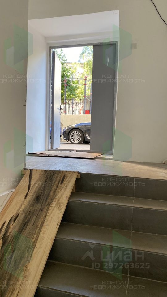 Отдельный вход со двора, широкая, просторная лестница.