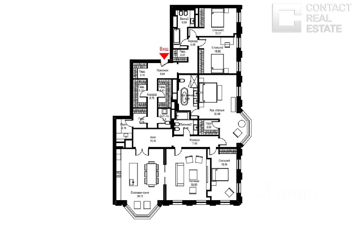 Предлагается великолепная квартира с панорамными видами на набережную, переулок и двор. Функциональная планировка включает: просторную гостиную-столовую, четыре спальни и четыре санузла.