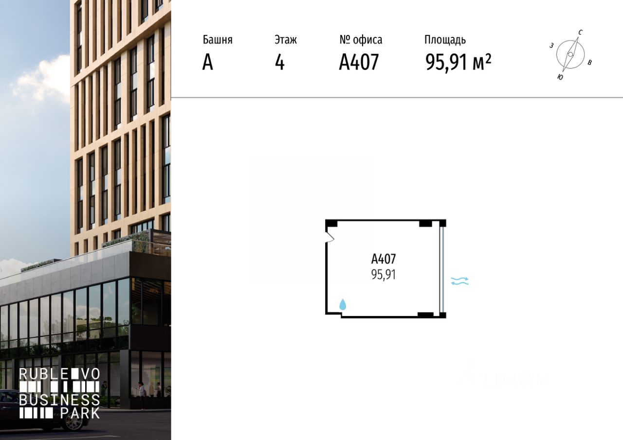 ОФИС В БАШНЕ A | RUBLEVO BUSINESS PARK Класс А | Победитель премии Move Realty Awards в номинации ''Лучший проект для инвестиций''