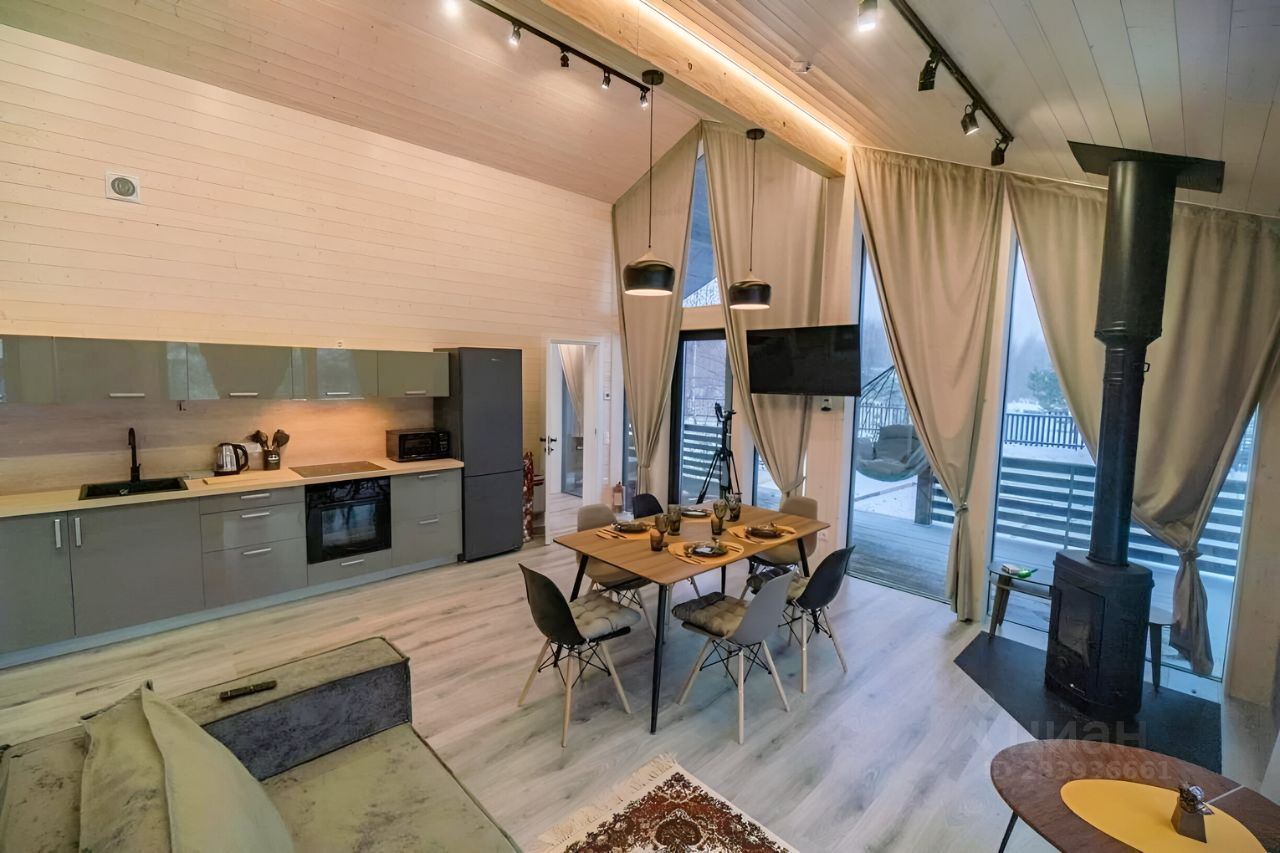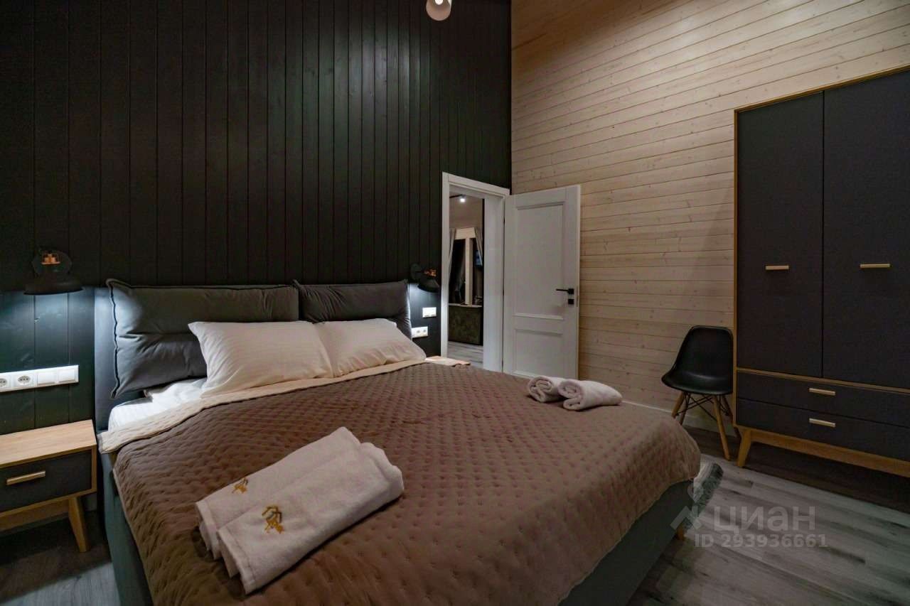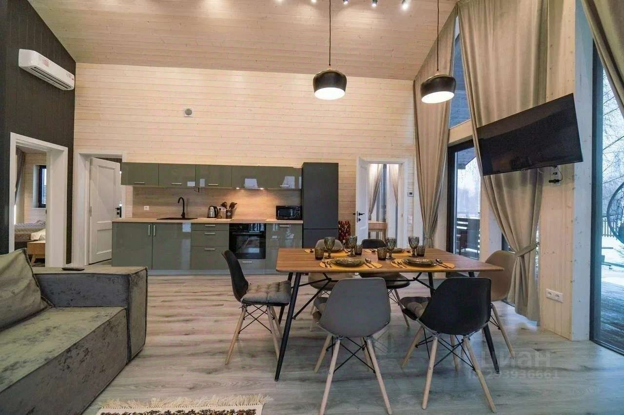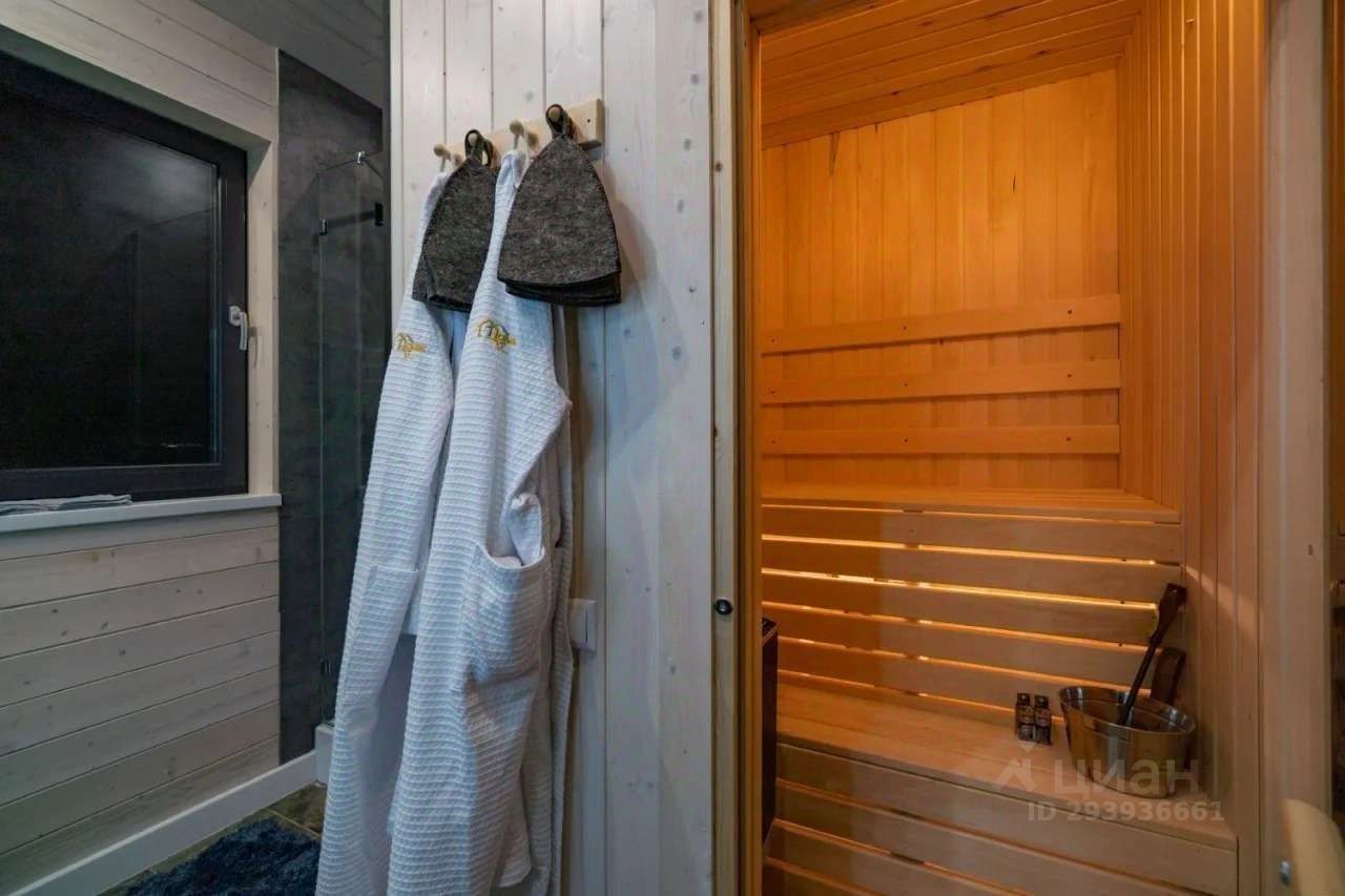 3 комнаты (2 спальни и кабинет с двуспальным диваном), просторная кухня-гостинная, сан. Узел с душевой, небольшая сауна прямо в доме!