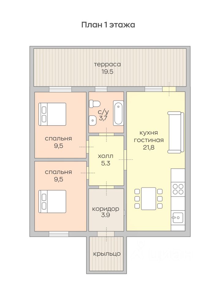 Площадь дома 70 м² (плюсом имеется антресольный этаж - 30 кв, где можно оборудовать спальню или кабинет),