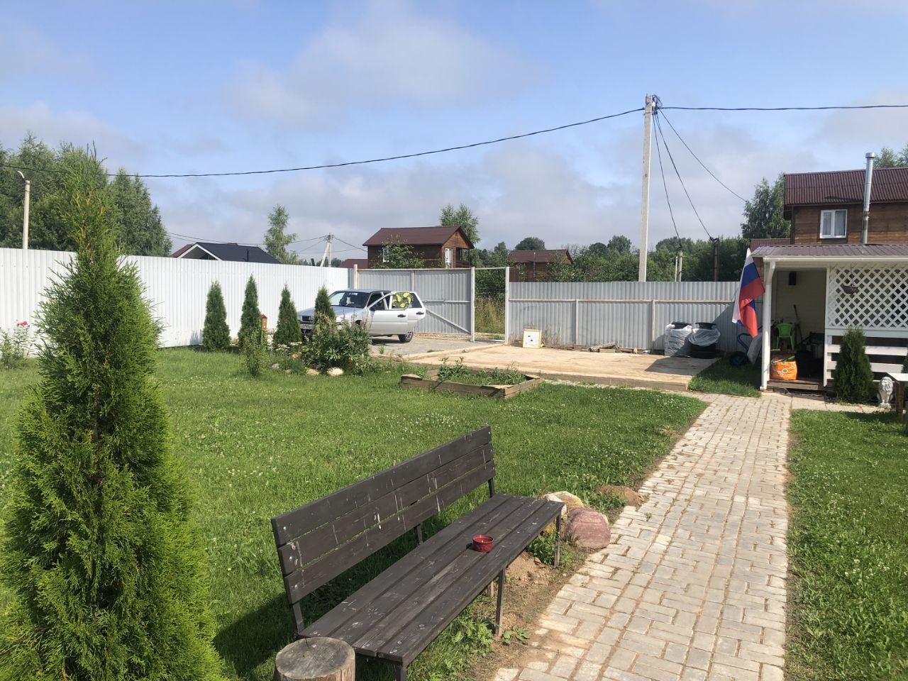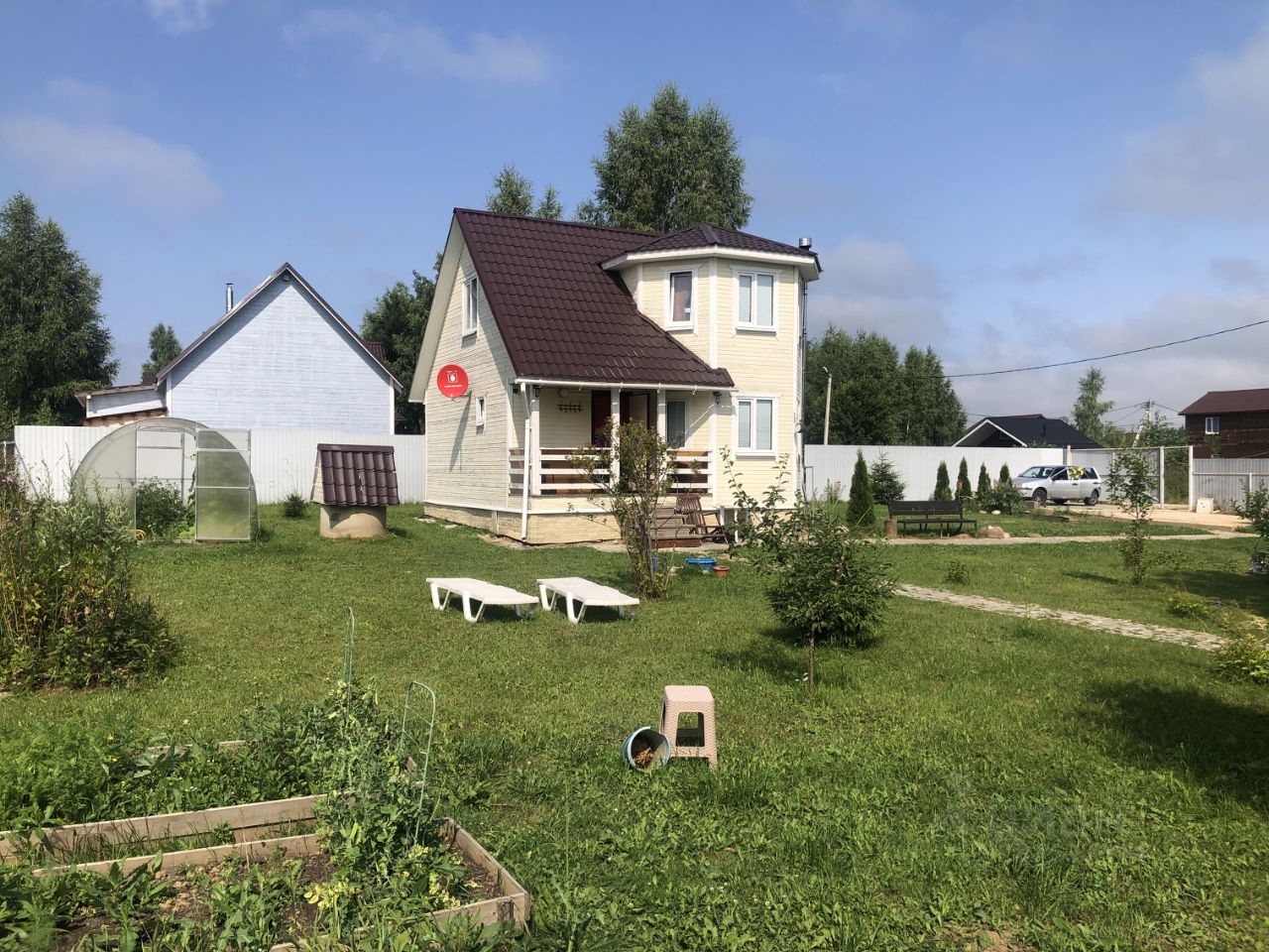 На участке есть бытовка с верандой 7/6, теплица 6/3, парковочное место для машин 6/6, залитая площадка под гараж 6/6 , колодец , септик . Место для шашлыков , дровник .