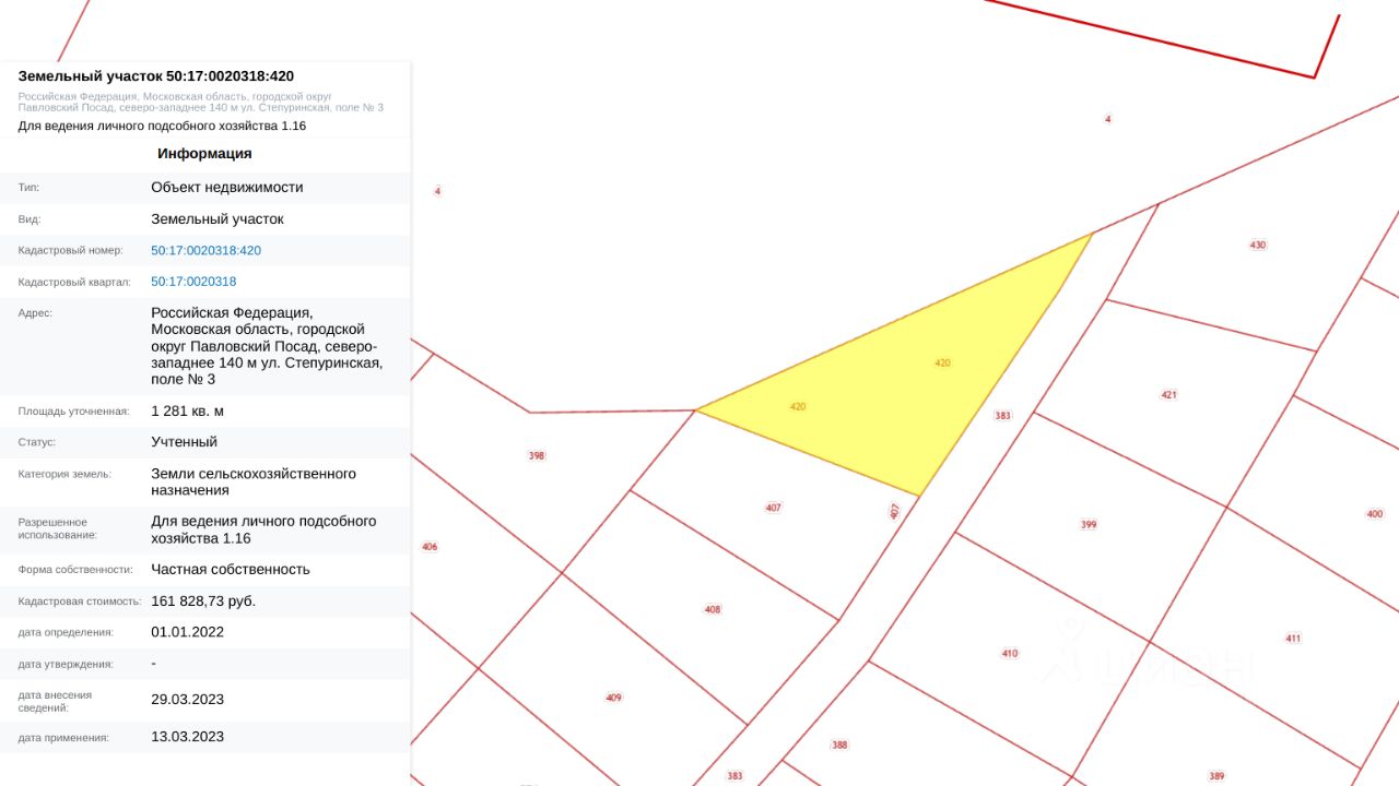 Кадастровый номер: 50:17:0020318:420 ( уч. 82)