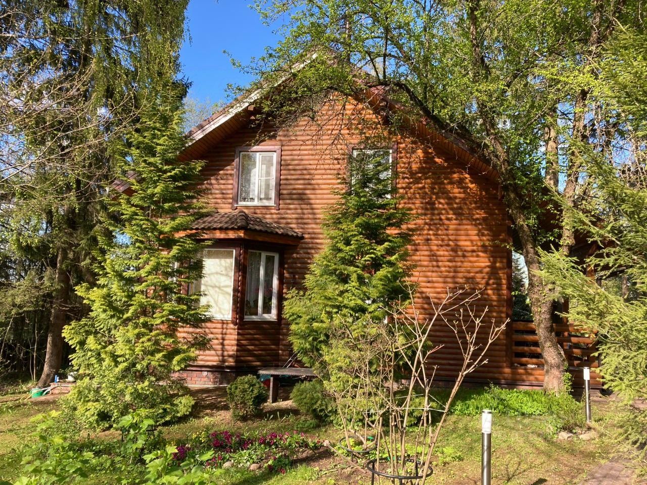 Продается двухэтажный дом из бруса, 140 кв.м., обшитый, утепленный, крыша из натуральной черепицы, на участке 30 соток в лесном коттеджном поселке ТСН Домик в лесу. Централизованное электричество, канализация и водоснабжение, газ. На участке дом, хозблок с двумя комнатами и генератором, беседка 18 кв.м, качели, газоны, освещение дорожек. 15 больших лесных деревьев: ель, липа, береза, сосны, а также цветники, вишня, ягодные кустарники. Высокое место. Есть еще участок напротив дома 9,5 соток с машиноместом, баней-сауной с комнатой и санузлом с душем. Дом строился для себя для всесезонного проживания, жила одна хозяйка, все оборудование новое: газовый котел, отопление, горячая вода, фильтрация воды. На 1 этаже спальня, холл, прихожая, бойлерная, санузел с душем, кухня-столовая, лоджия.