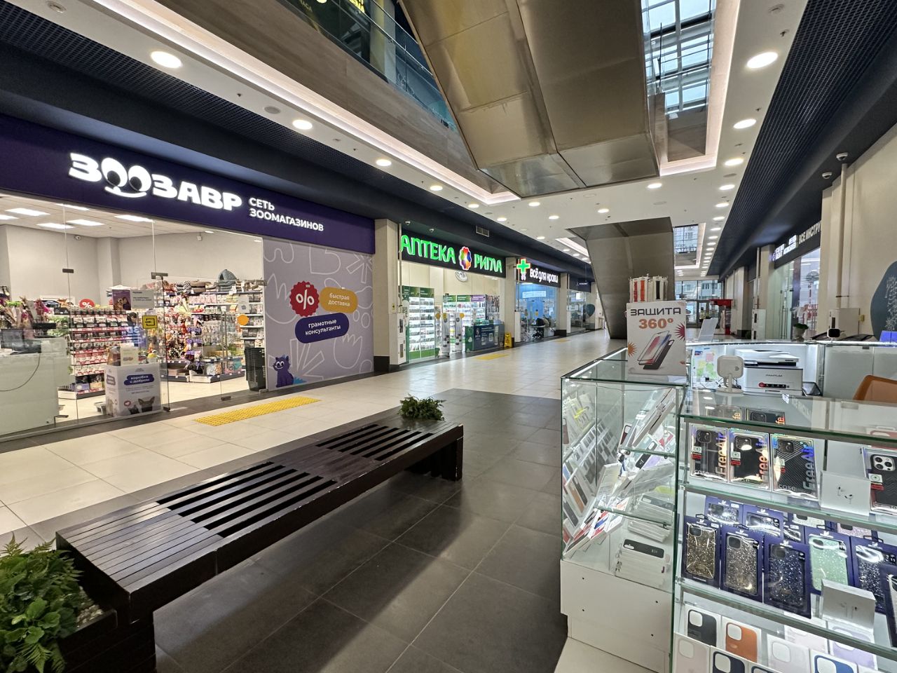 Операторы фудхолла: KFC, Крошка-картошка, Black Star Burger , вьетнамская кухня, пиццерия. Якорные арендаторы ТЦ: супермаркет Перекресток, Вкусно и Точка, магазины DNS, FixPrice, DNS, Все для Крохи, Все инструменты, Ригла, Зоозавр, ЯндексМаркет, OZON, LaModa, фитнес World Class, рестораны, салон красоты, барбершоп, химчистка и т.д.