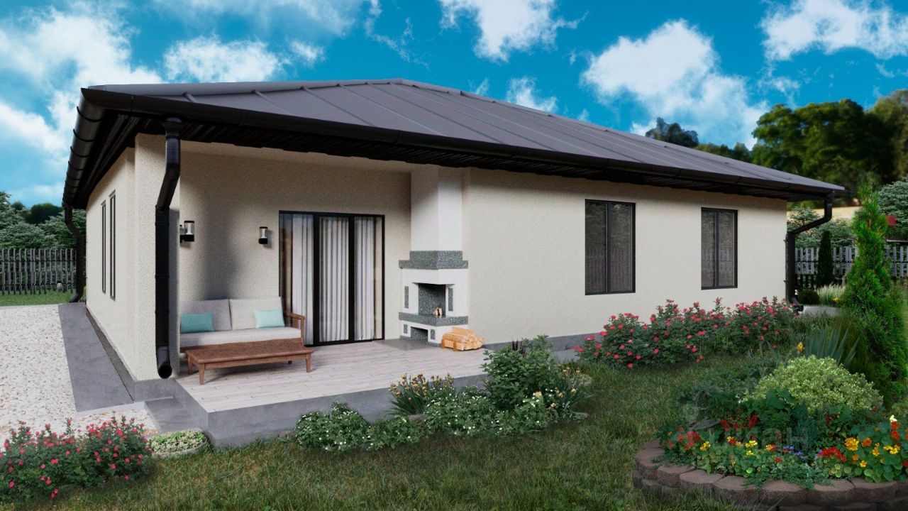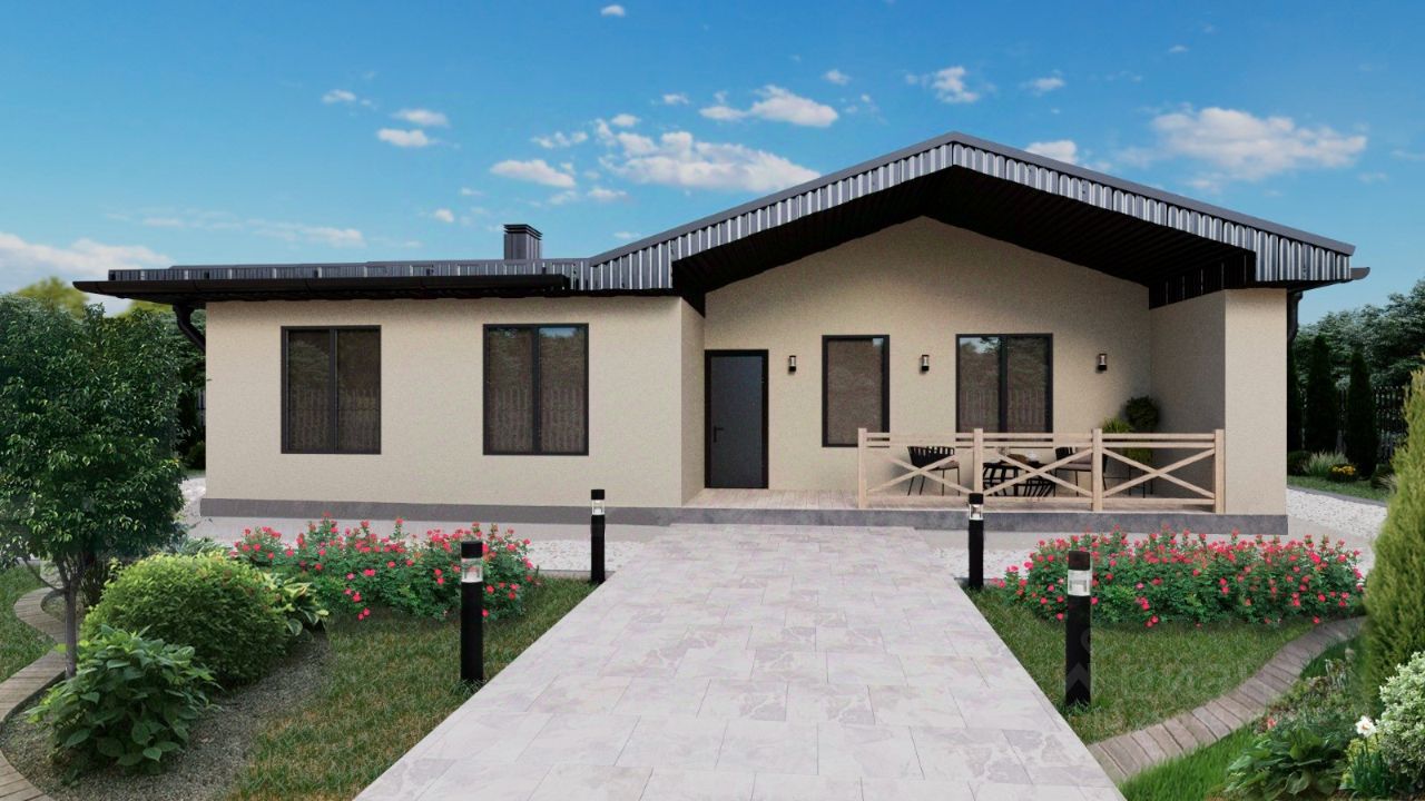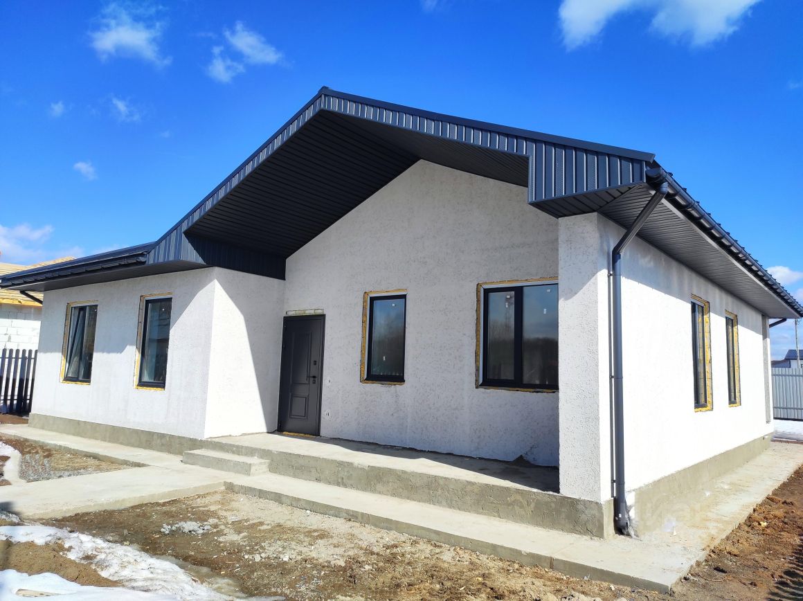 Продается отличный дом для семьи из 4-6 человек в 13 км от МКАД по Щелковскому или Горьковскому шоссе, в КП Новое Шевелкино! Также можно приобрести участок с подрядом на строительство такого дома в семейную ипотеку под 6% годовых, IT - ипотеку или поможем подобрать ипотечную программу под Ваши потребности! Просторная и оптимальная планировка дома позволит каждому члену семьи найти свой уголок для отдыха и творчества! В доме расположены: прихожая, коридор, кухня-гостиная с выходом на террасу, раздельный санузел, гардеробная, 3 спальни, техническое помещение. Для Вас постарались наши дизайнеры и предложили красивый и функциональный дизайн интерьера дома! Площадь дома составляет 125,7 м2, дом одноэтажный, выполнен из газоблока 400 мм. Снаружи стены отделаны фактурной штукатуркой.