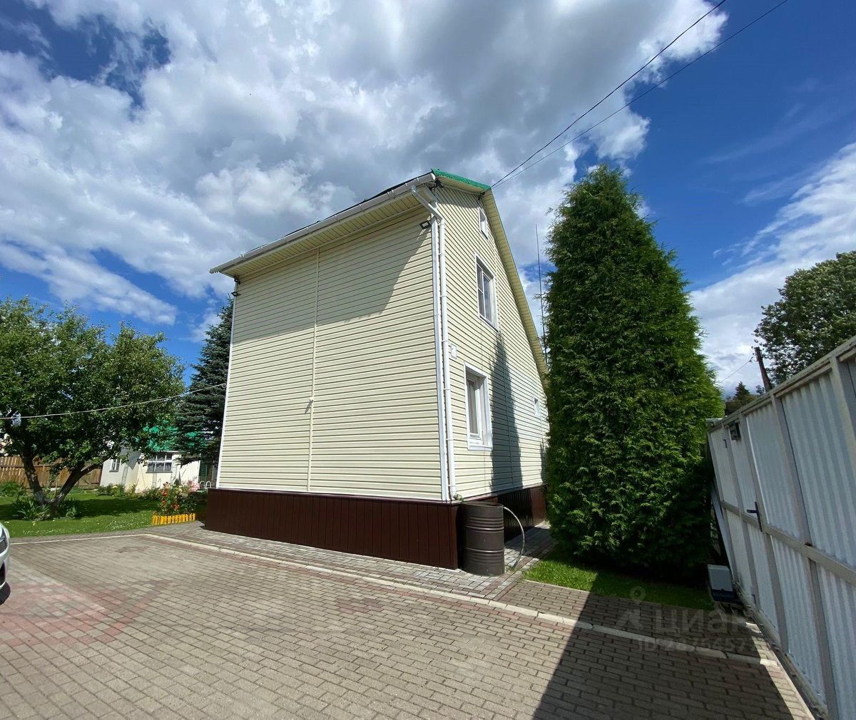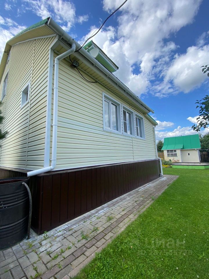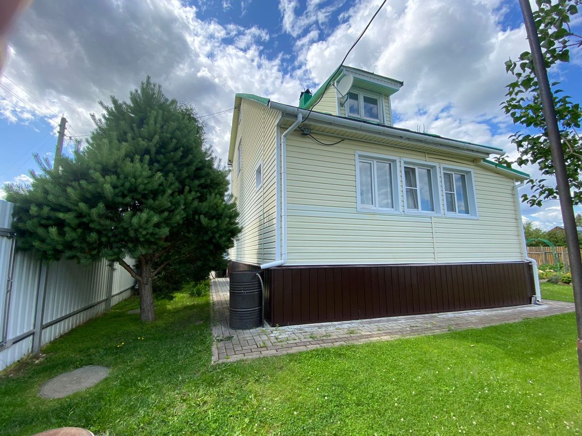 Дом построен из сруба-бревна на ленточном фундаменте, утеплен, обшит сайдингом. Крыша - фальц. Кровля. Планировка: 1-этаж столовая, с/узел, зал, кухня, 2-этаж две спальные комнаты. Также имеется вместительное подпольное помещение (цокольный этаж) - удобное место для хранения консерваций и инструментов.