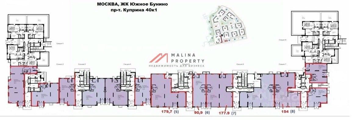 Продажа торгового помещения 179,7 м2 по адресу поселение Сосенское, проспект Куприна, д .40 корпус 1 (10 минут транспортом от м. Бунинская аллея), 1 линия домов.