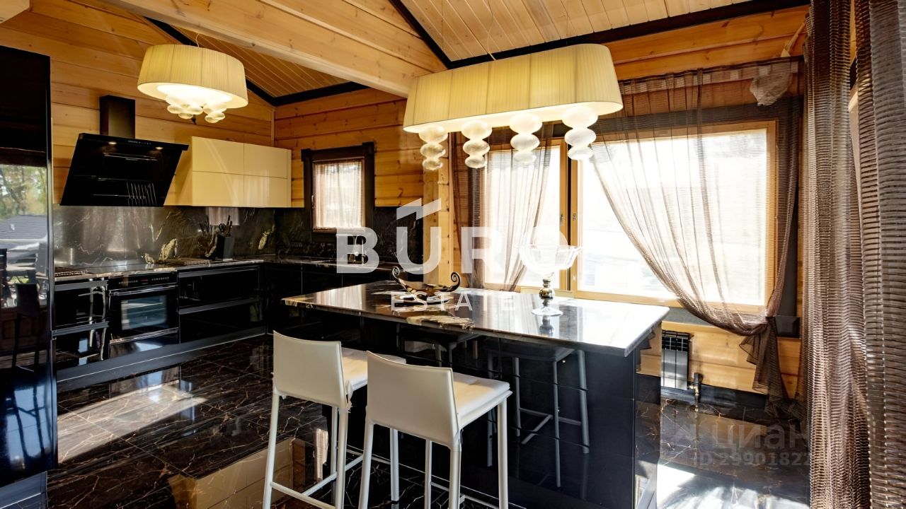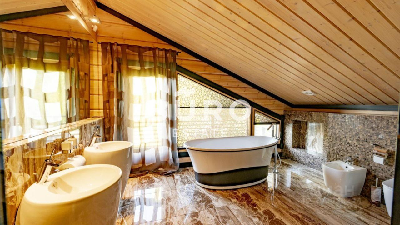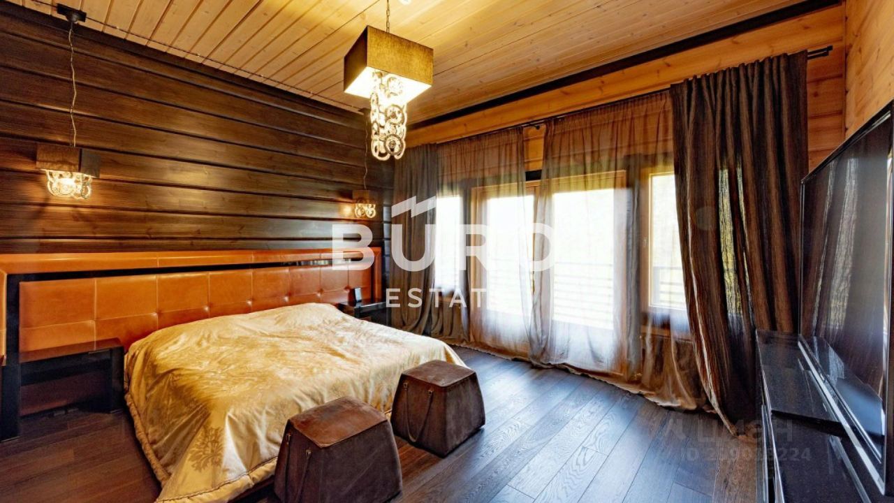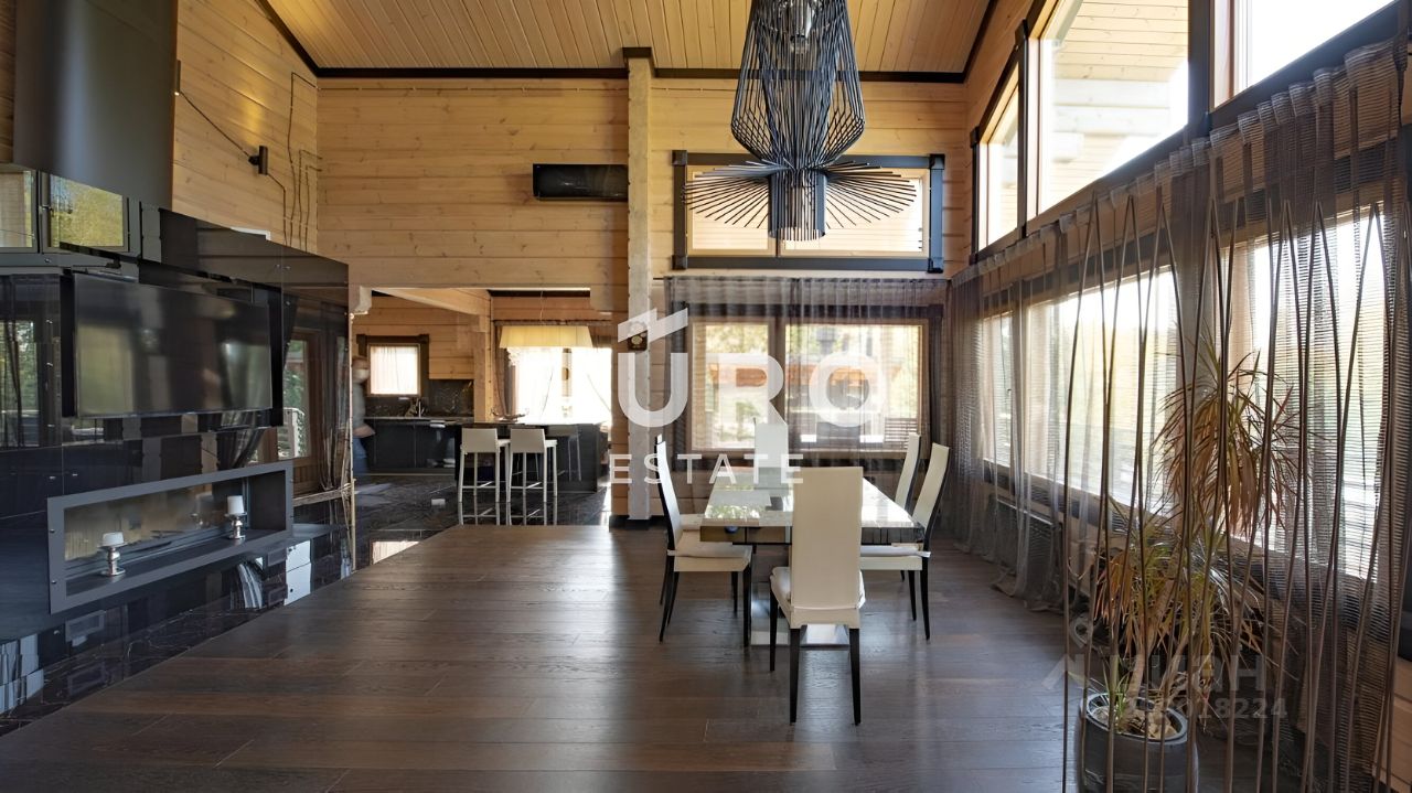 В деревянном доме царит особая атмосфера уюта. Интерьер укомплектован стильной мебелью. В санузлах установлена качественная сантехника. Панорамные окна, второй свет, большая площадь остекления и высокие потолки делают внутреннее пространство невероятно светлым и объёмным.