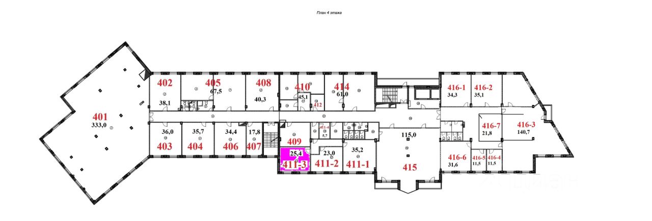 Офис 411-3 на 4-ом этаже 5-этажного корпуса д.4с1 на генплане в Технопарке Лихачевский. НДС не облагается. Освободится ~ 13.05.2024 г.