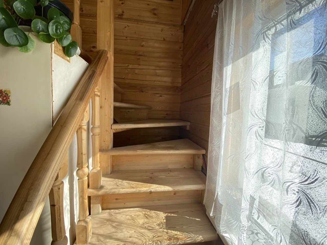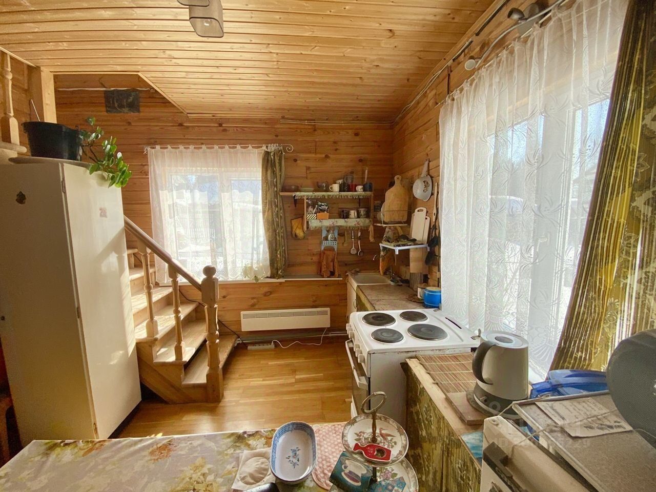 На первом этаже: холл, кухня, гостиная, ванная и с/у, спальня.