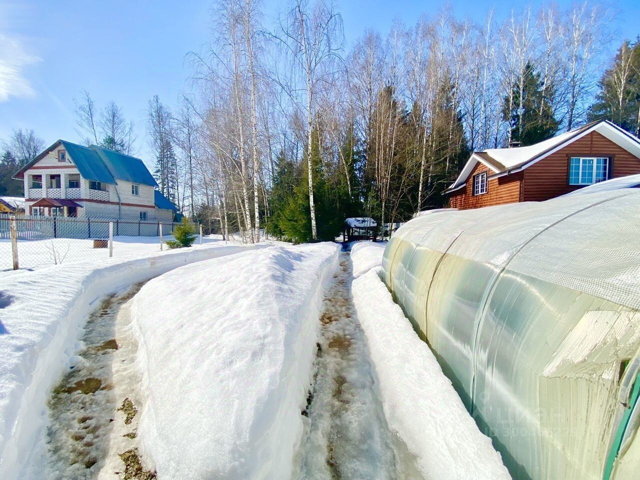 Участок правильной формы, огорожен со всех сторон забором. Благоустроен полностью: есть дорожки, беседка, хоз блок, лесные деревья, сад и парник.