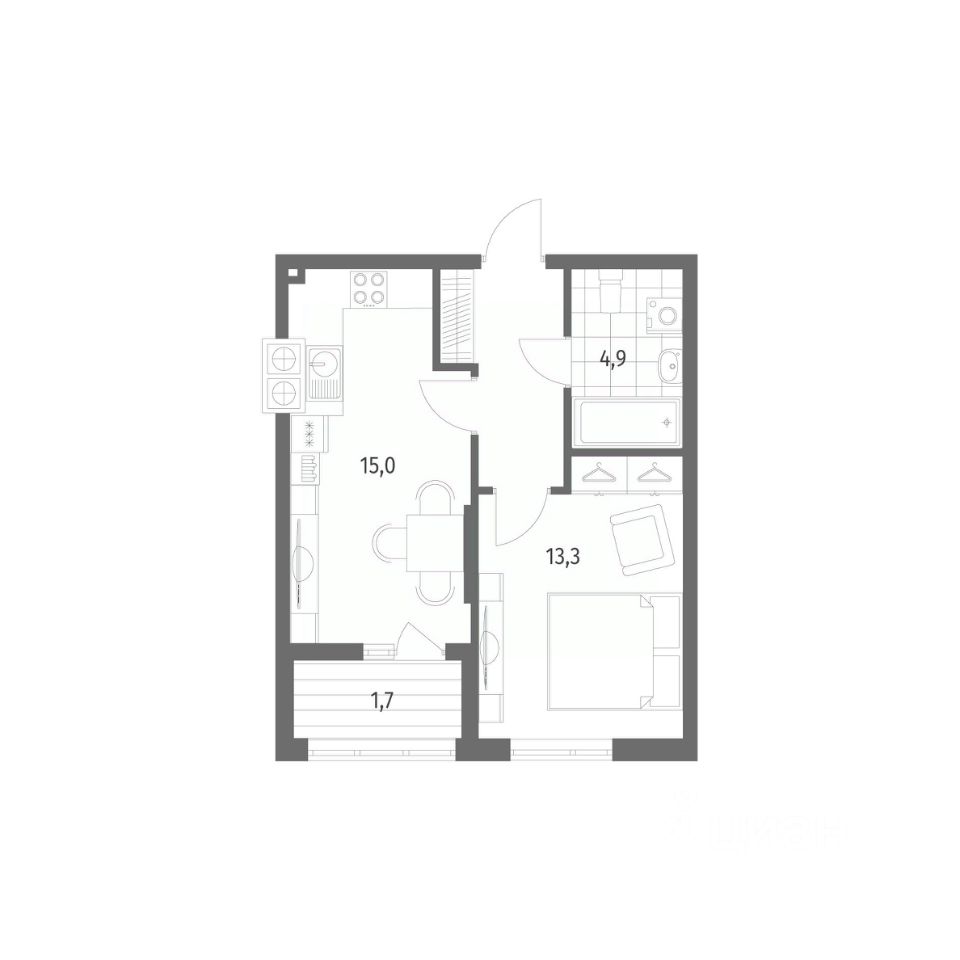 Продается квартира площадью 40.4 м² на 1 этаже 1 секции в Дом на Красной от компании ГК ''ТРЕСТ''. Площадь кухни 15 м². Жилой комплекс комфорт-класса ''Дом на Красной'' расположен в Центральном районе Калининграда на пересечении улиц Красная и Псковская. Жилой комплекс включает в себя два дома высотой 8 этажей. Срок сдачи намечен на 4 квартал 2026 года.
