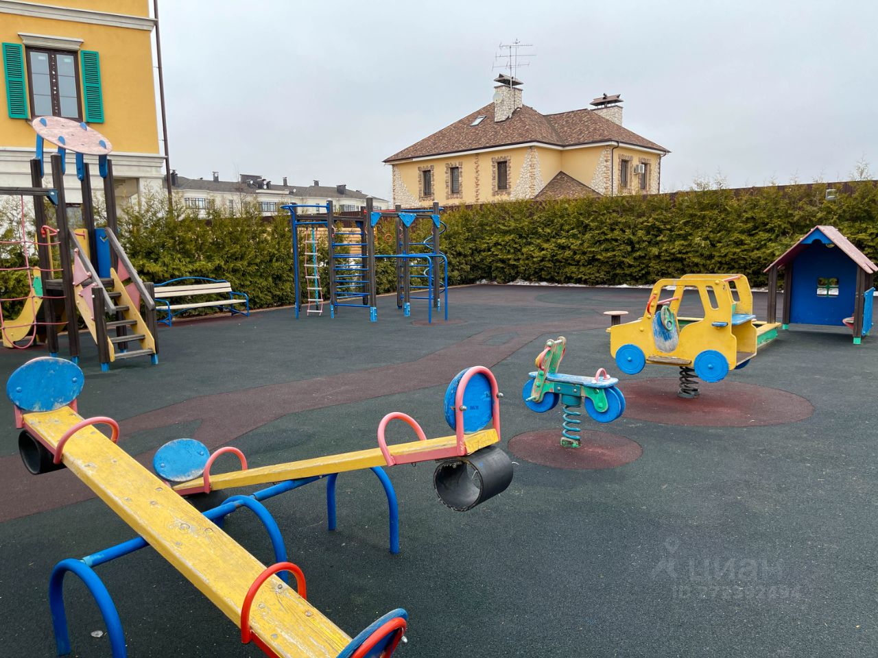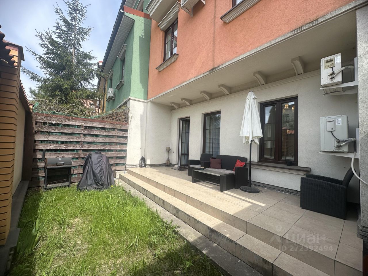 На участке зона барбекю, высаженным газоном с автополивом. В посёлке большая современная детская площадка с мягким покрытием.