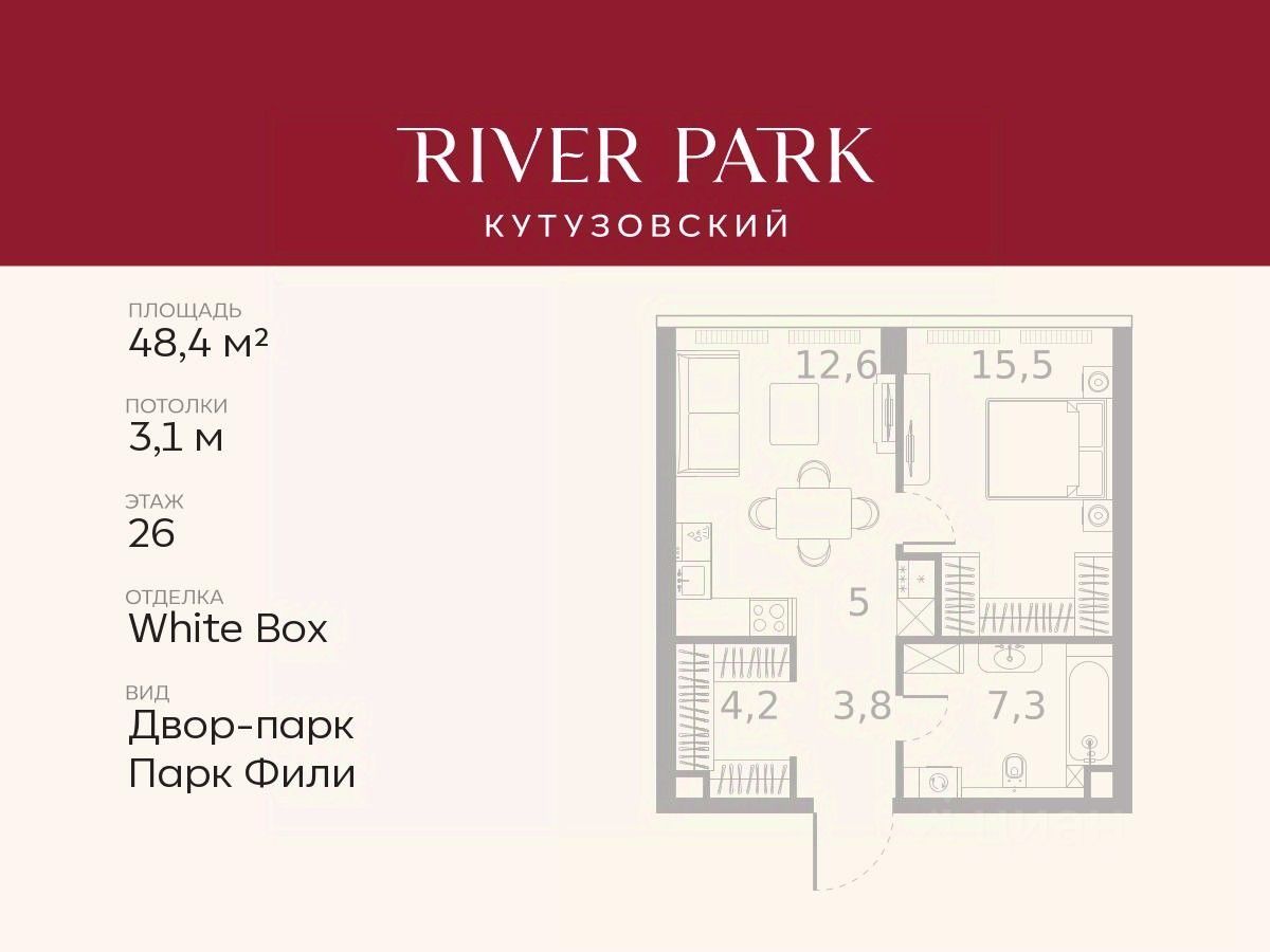 Расположение и Транспортная доступность: - На берегу Москвы-реки, напротив Москва-Сити - 600 метров до Кутузовского проспекта - Удобный съезд с ТТК - Прямой выезд на МКАД по Северному дублеру Кутузовского проспекта. - В пешей доступности 3 станции метро: Фили, Парк Победы, Кутузовская, а также станция МЦД Фили. Архитектура от именитого бюро ADM отличается уникальной пластикой фасадов - башни словно парят в воздухе, играя гранями как драгоценные камни. Жилой комплекс состоит из 5-ти небоскребов с home park на закрытой территории и внешней торговой галереей с открытым доступом.