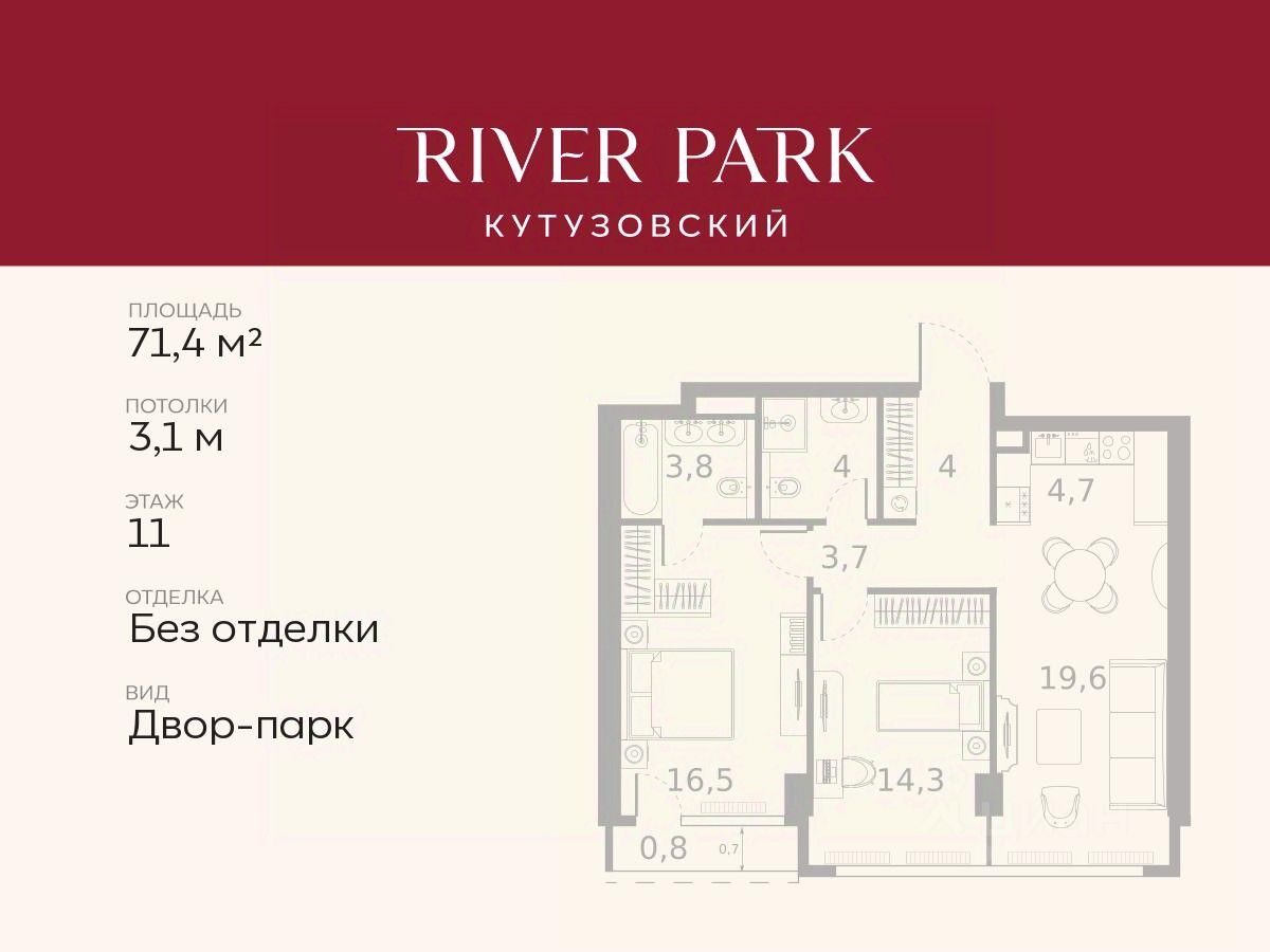Расположение и Транспортная доступность: - На берегу Москвы-реки, напротив Москва-Сити - 600 метров до Кутузовского проспекта - Удобный съезд с ТТК - Прямой выезд на МКАД по Северному дублеру Кутузовского проспекта. - В пешей доступности 3 станции метро: Фили, Парк Победы, Кутузовская, а также станция МЦД Фили. Архитектура от именитого бюро ADM отличается уникальной пластикой фасадов - башни словно парят в воздухе, играя гранями как драгоценные камни. Жилой комплекс состоит из 5-ти небоскребов с home park на закрытой территории и внешней торговой галереей с открытым доступом.