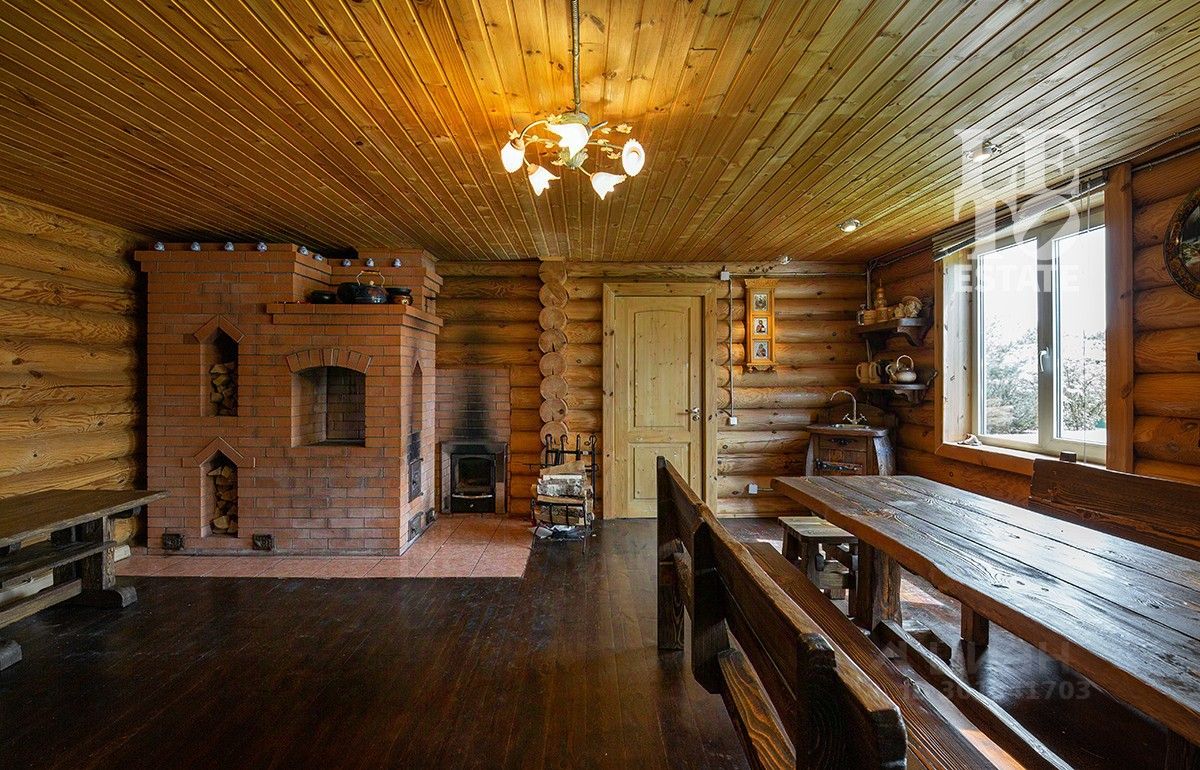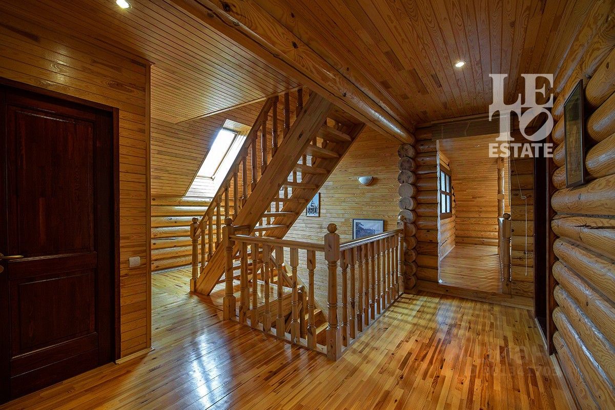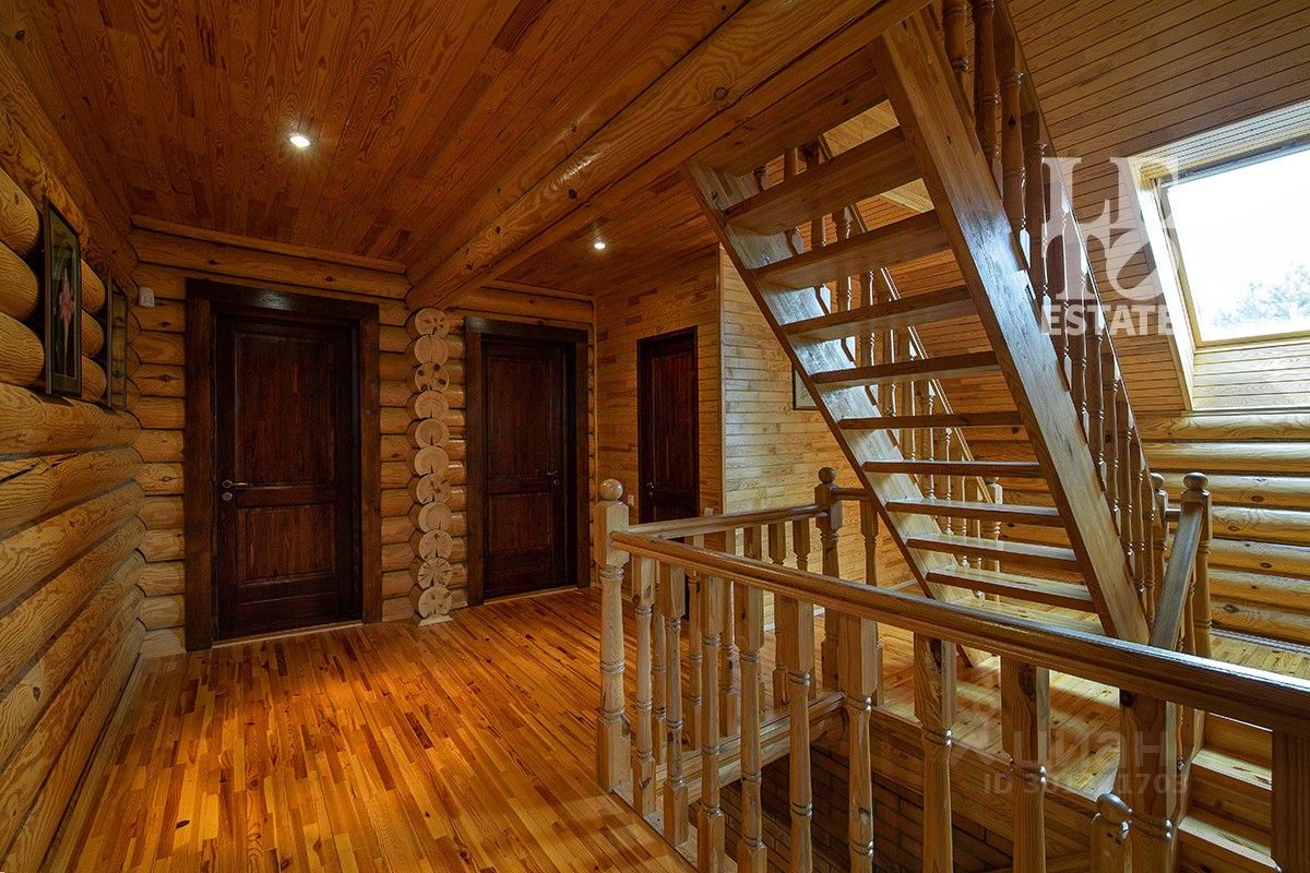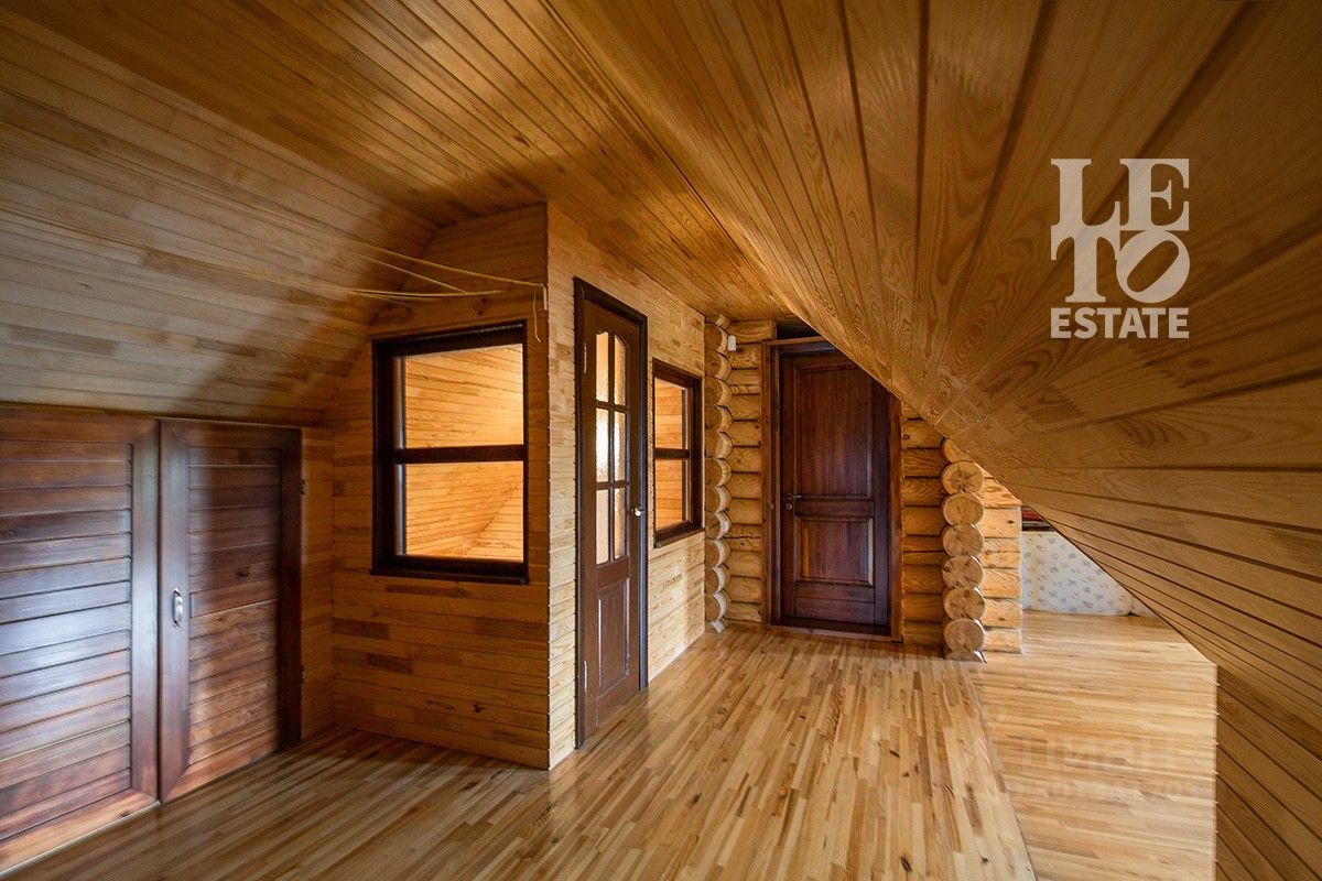 Во внутренней отделке дома были использованы натуральные материалы, в основном дерево (полы, лестницы, перекрытия и стены). Дом полностью обставлен мебелью и технически оснащен всем необходимым. Дом оснащен охранными датчиками движения.