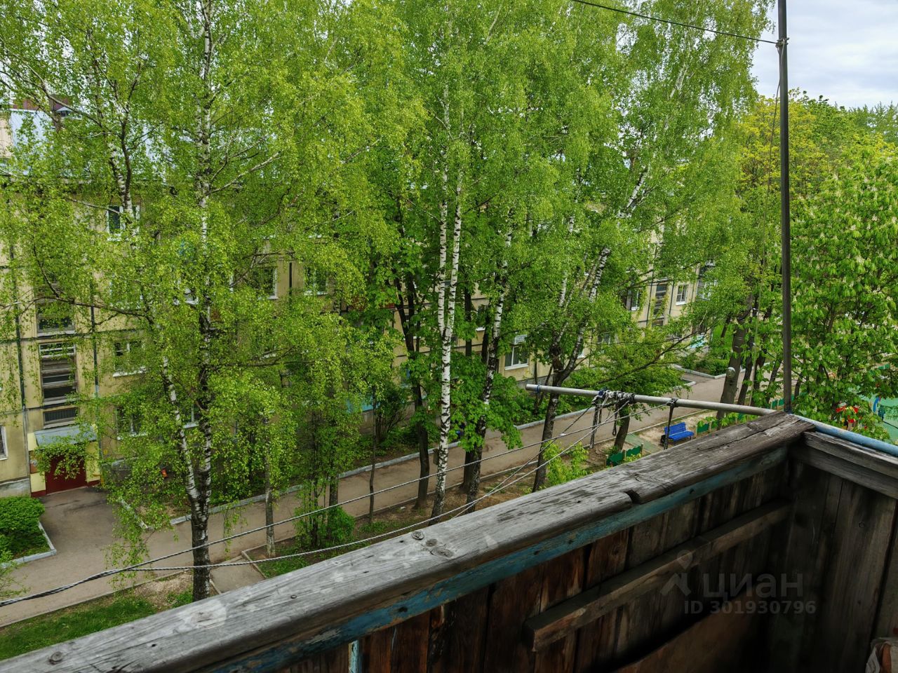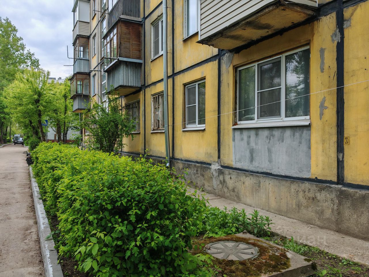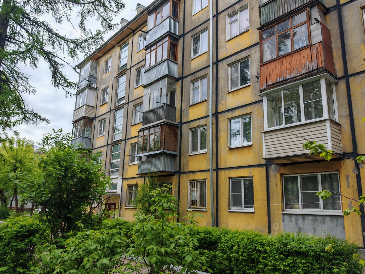 Окна выходят в зеленый двор.