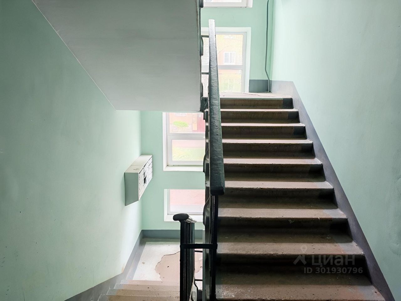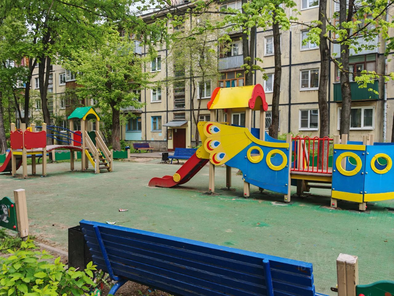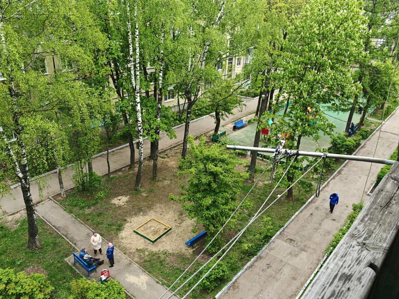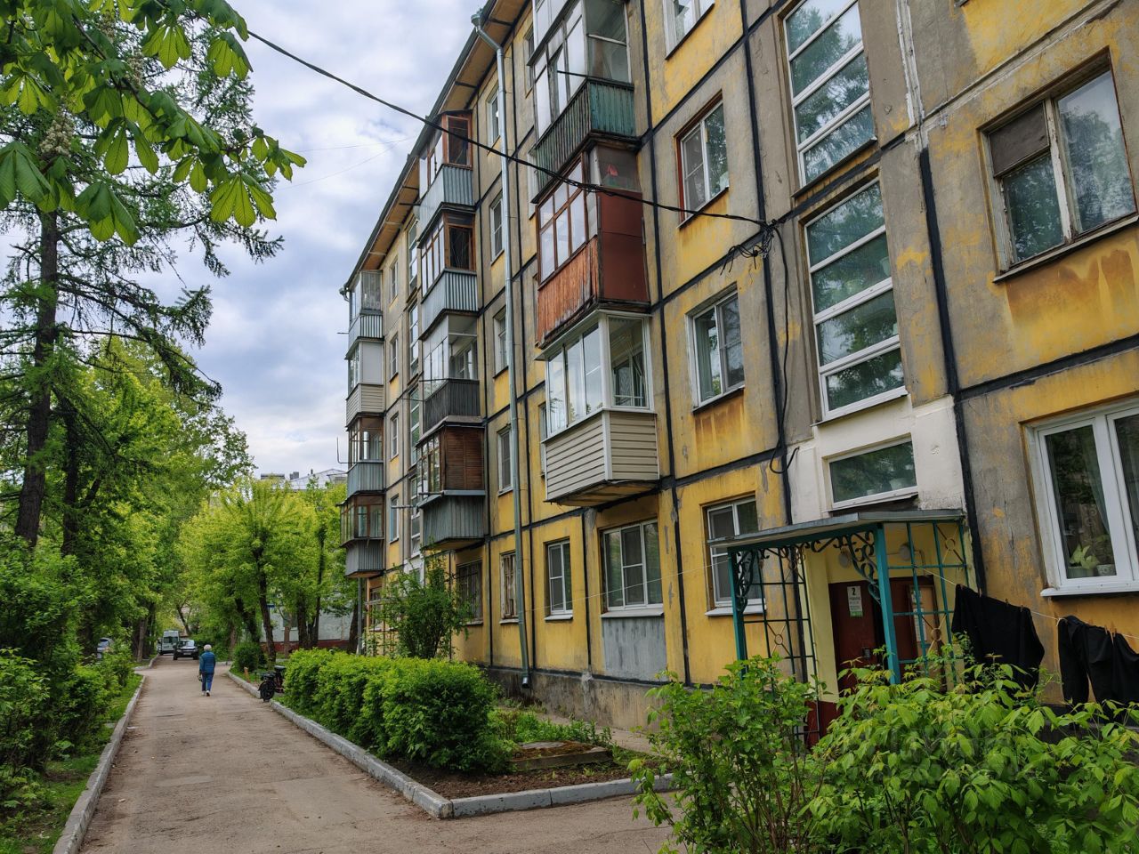 Окна выходят в зеленый двор.