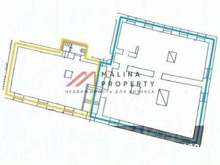 Первый этаж - два блока 72 м2 и 150 м2, открытая планировка, общий вход с отдельными входами в каждый блок, высота потолка - 3,6 м, витринные окна по фасаду. Электрическая мощность 120 кВт.