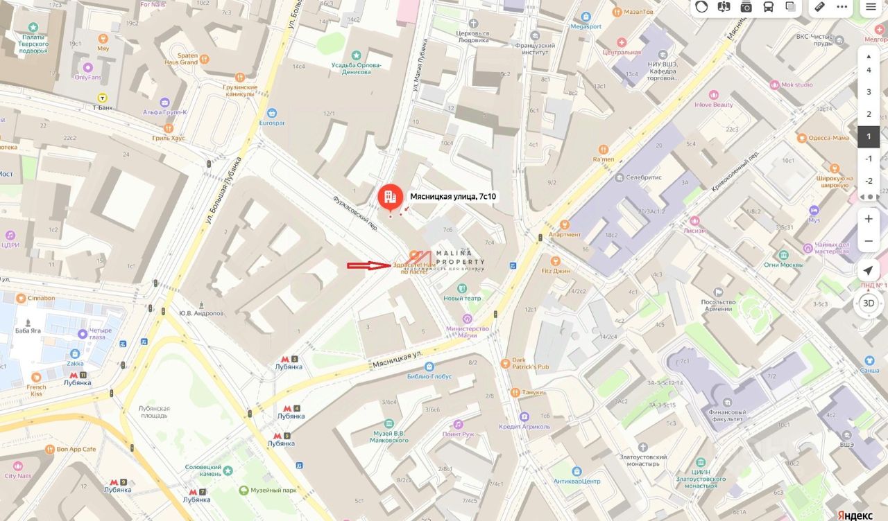 Продажа торгового помещения на ул. Мясницкая, д. 7/10 (3 минуты пешком от м. Лубянка).
