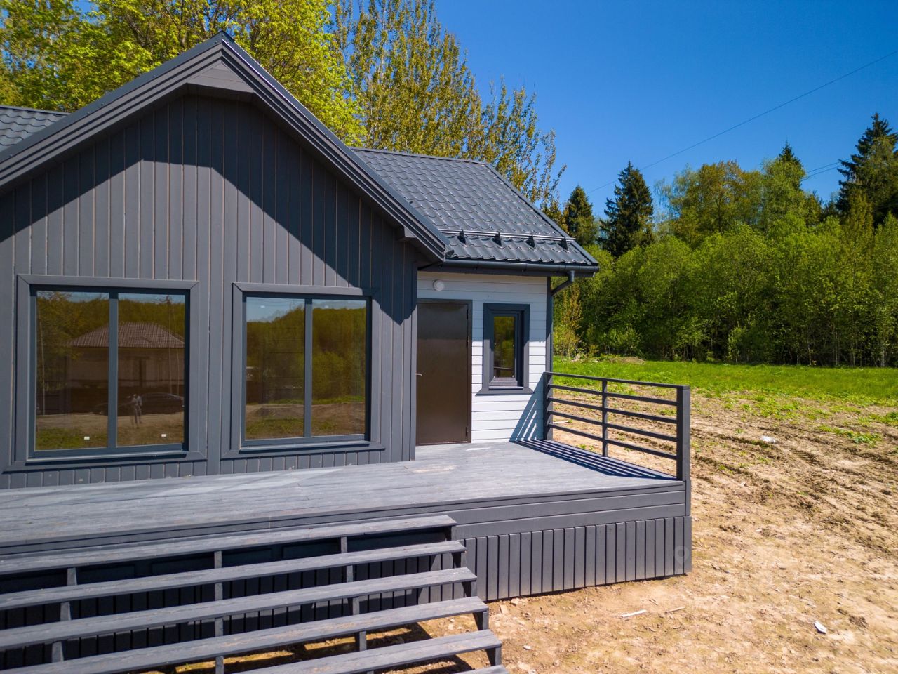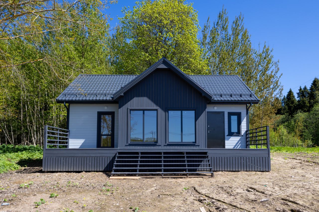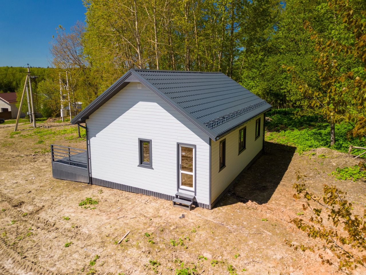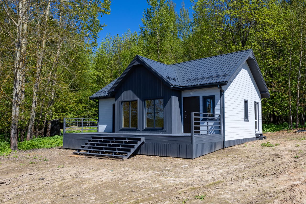 В доме: большая кухня-гостиная (28 кв. м.), две спальни (12,7+10,6 кв. м.), тамбур (5 кв. м.). котельная (4 кв. м.), санузел (5,5 кв. м.), просторная терраса (25,5 кв. м.) Электричество 15 кВт. (подключено): электропроводка, розетки, выключатели и освещение - разведено!