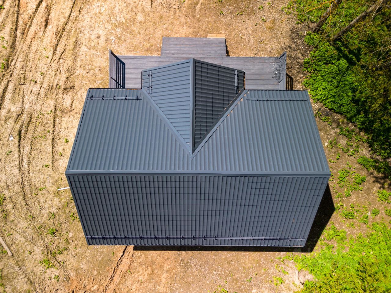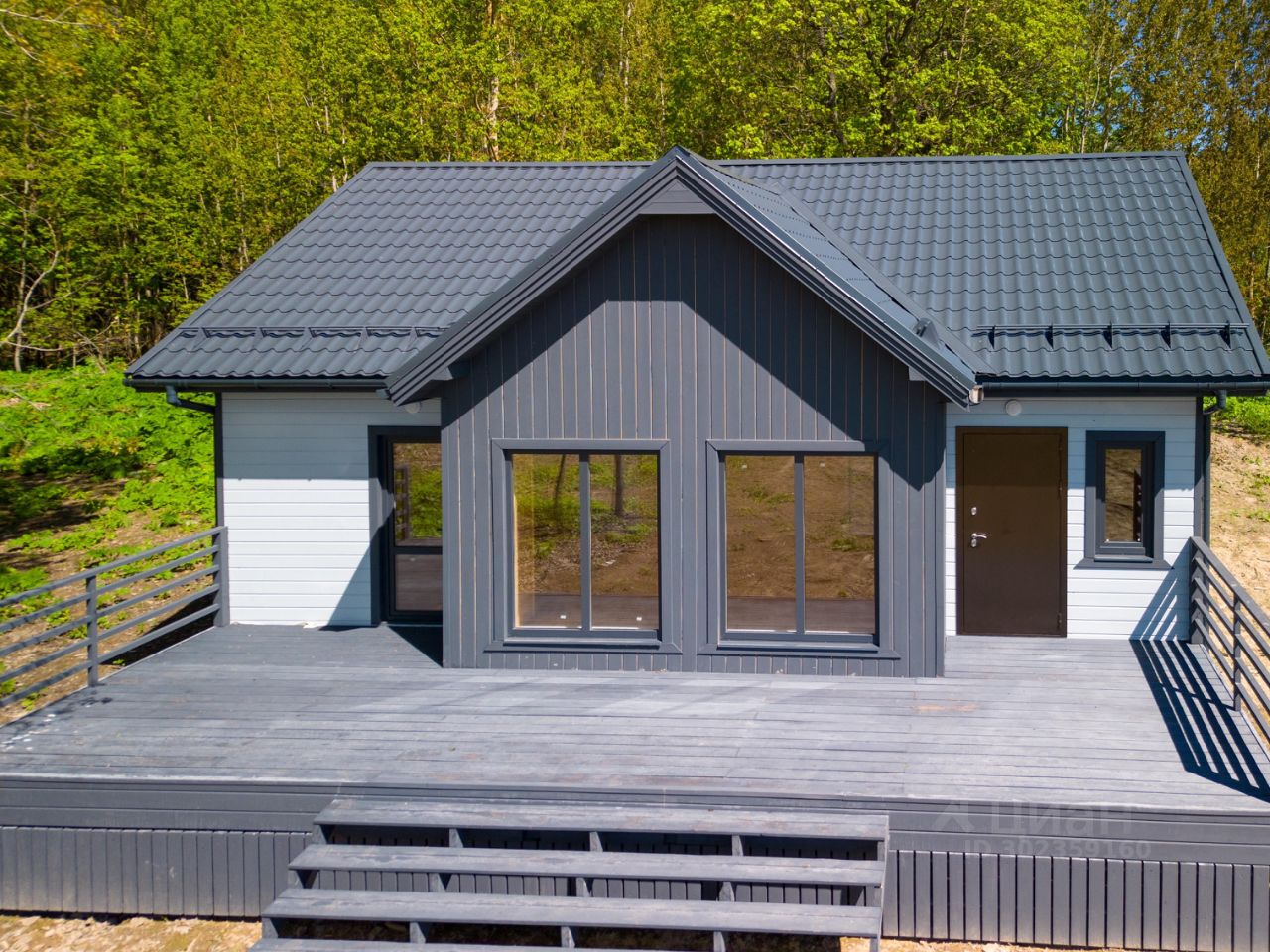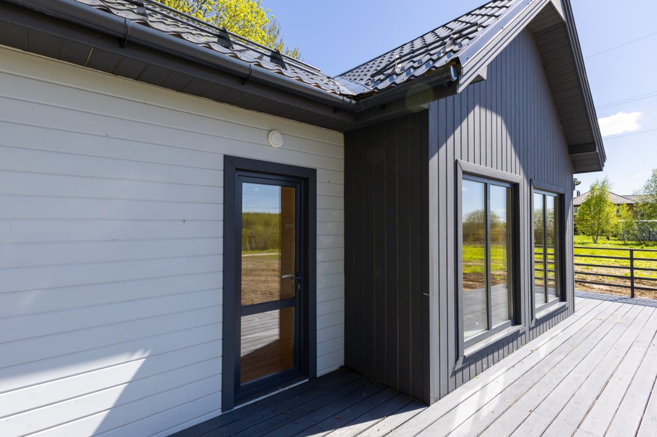 В доме: большая кухня-гостиная (28 кв. м.), две спальни (12,7+10,6 кв. м.), тамбур (5 кв. м.). котельная (4 кв. м.), санузел (5,5 кв. м.), просторная терраса (25,5 кв. м.) Электричество 15 кВт. (подключено): электропроводка, розетки, выключатели и освещение - разведено!