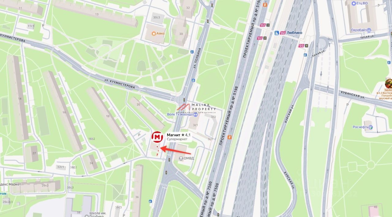 Продажа торгового здания 930 м2 с арендатором сетевой супермаркет ''Магнит'' на ул. Кухмистерова, д. 20к2 (10 минут пешком от м. Печатники). 1 линия домов.