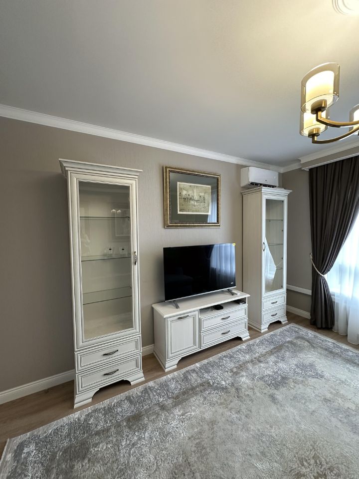 Сдается квартира с дизайнерским евроремонтом. Комнаты раздельные, два санузла. В квартире есть все необходимое для комфортного проживания. Ремонт продуман до мелочей, много мест для хранения, шкафов. Большой угловой раскладывающийся диван с системой хранения, в кровати тоже имеются выдвижные ящики. Кондиционеры в каждой комнате, два телевизора. Есть вся необходимая техника: посудомоечная машина, холодильник, духовой шкаф, стиральная машина, микроволновая печь, чайник, утюг. Дом новый, построен в 2023 году.в квартире никто не проживал. Квартира готова к проживанию. Арендаторов с животными не рассматриваем. Так же имеется парковочное место в подземном паркинге,которое, при необходимости, можно снять за дополнительную плату. Двор без машин, обустроен детскими игровыми площадками.