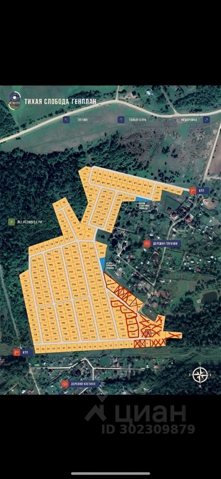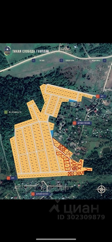 264 номер на карте - 9,42 сотки Кадастровый номер 50:04:0230320:930 стоимостью 998 тысяч рублей.