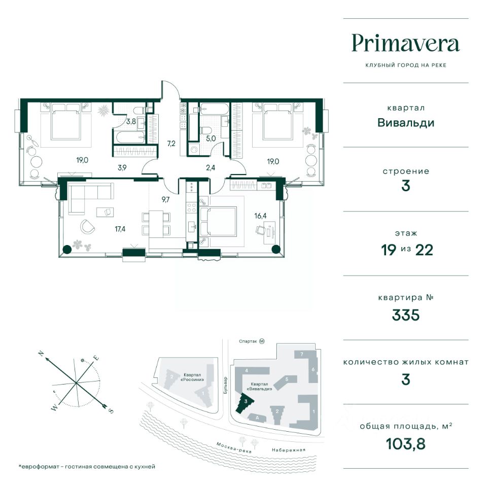 Клубный город на реке Primavera — это современный жилой комплекс премиум-класса, расположенный на первой береговой линии Москвы-реки в экологически чистом районе Покровское-Стрешнево.