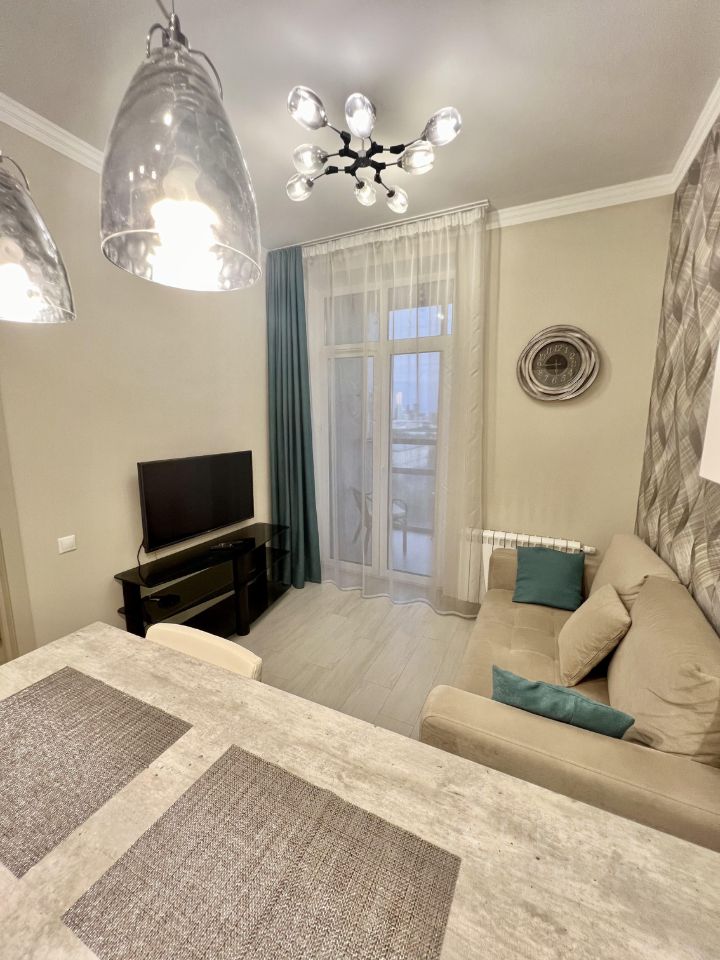 Жилой комплекс Династия. Стильный дизайн в светлых тонах, кухня-гостиная с Французскими окнами в пол + изолированная спальня, имеется большая гардеробная комната, а также два больших встроенных шкафа. Вся умная бытовая техника включаю посудомойку.
