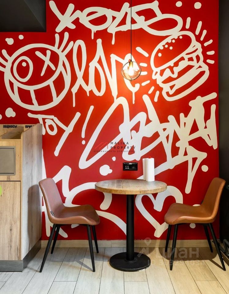 Общая площадь 170 м2. Располагается на первом этаже, открытая планировка. Два отдельных входа и запасной со двора. Электрическая мощность 120 кВт. Установлена вытяжка. Витринные окна, есть место для размещения рекламы на фасаде.