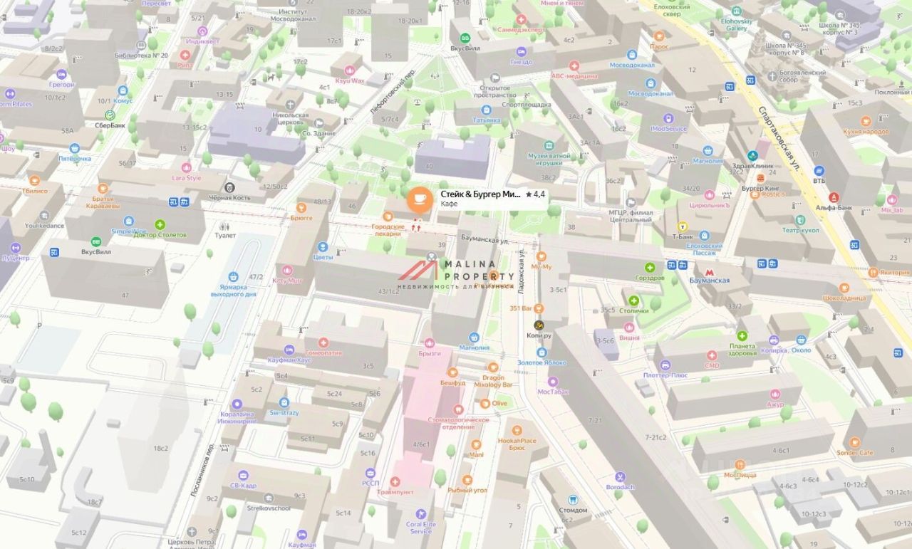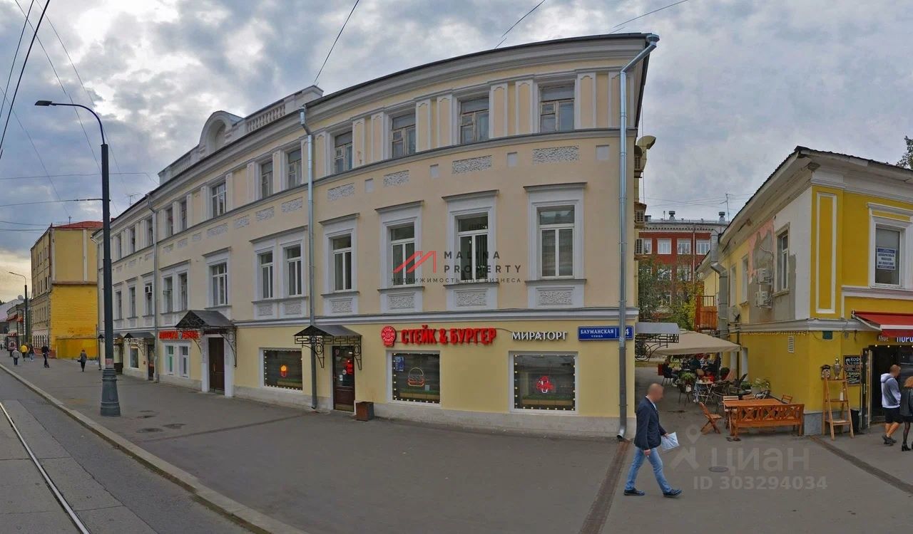 Продажа помещения с арендатором по адресу: ул. Бауманская, д.44с1 (3 минуты пешком от метро Бауманская). Первая линия домов.