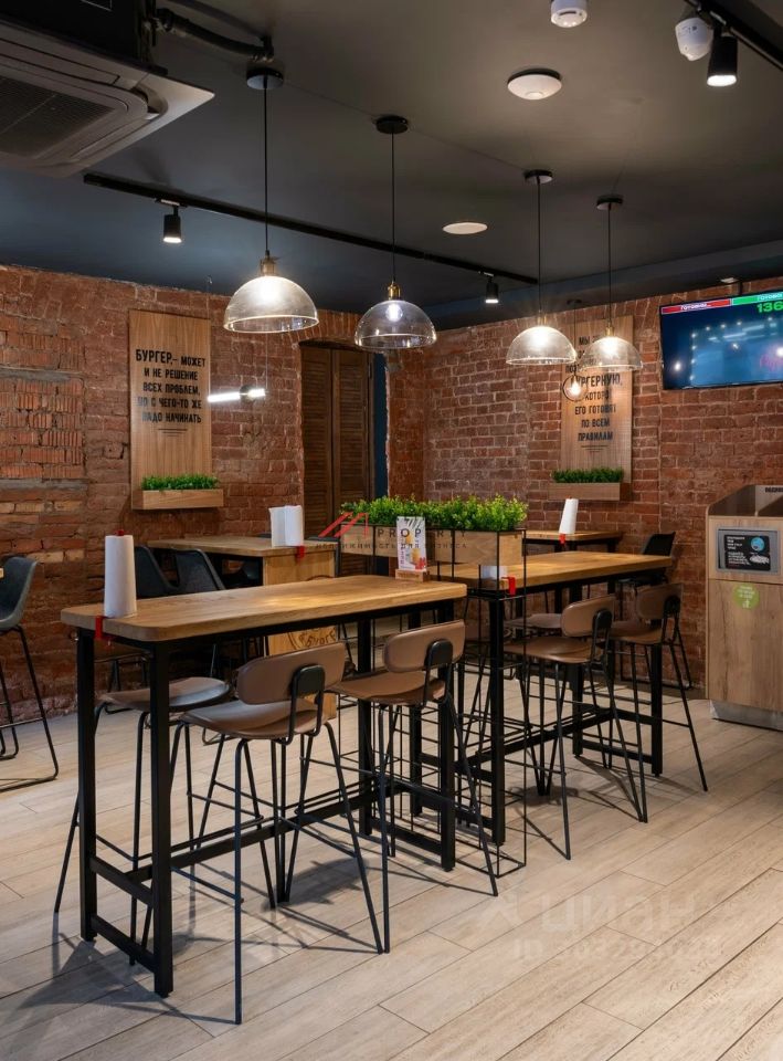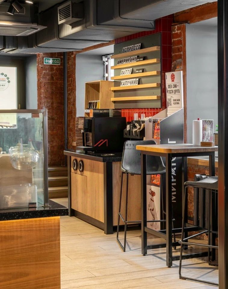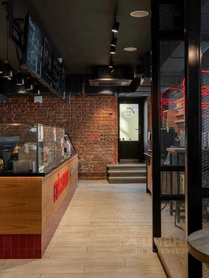 Общая площадь 170 м2. Располагается на первом этаже, открытая планировка. Два отдельных входа и запасной со двора. Электрическая мощность 120 кВт. Установлена вытяжка. Витринные окна, есть место для размещения рекламы на фасаде.
