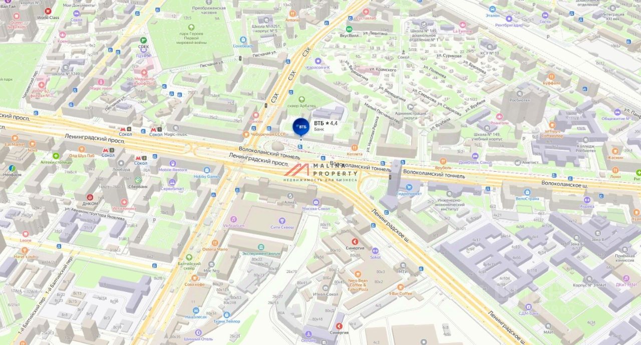 Продажа торгового помещения с Арендатором Банк ''ВТБ'', площадью 1189 м2 на Ленинградском проспекте (3 минуты пешком от станции метро ''Сокол''). 1-я линия!